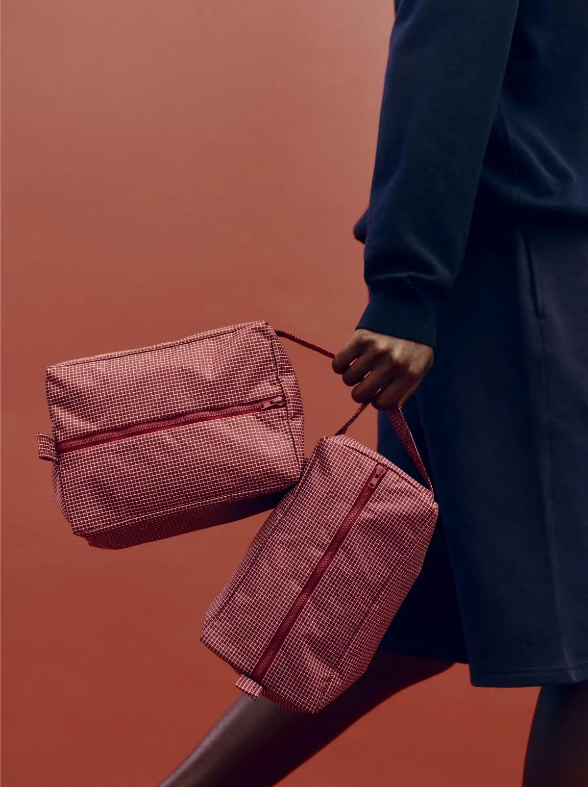 Combining minimalist design and everyday utility, the Grid Wash Bag is a sleek, practical solution for organising and carrying daily essentials. Made from a durable blend of 79% recycled nylon and 21% recycled polyester with water-repellent finish, it features a subtle check pattern, zip closure, and convenient handle. Spacious enough for makeup, toiletries, and more, it keeps belongings safe and dry – whether travelling or at home. Available in two designs in different colour options.