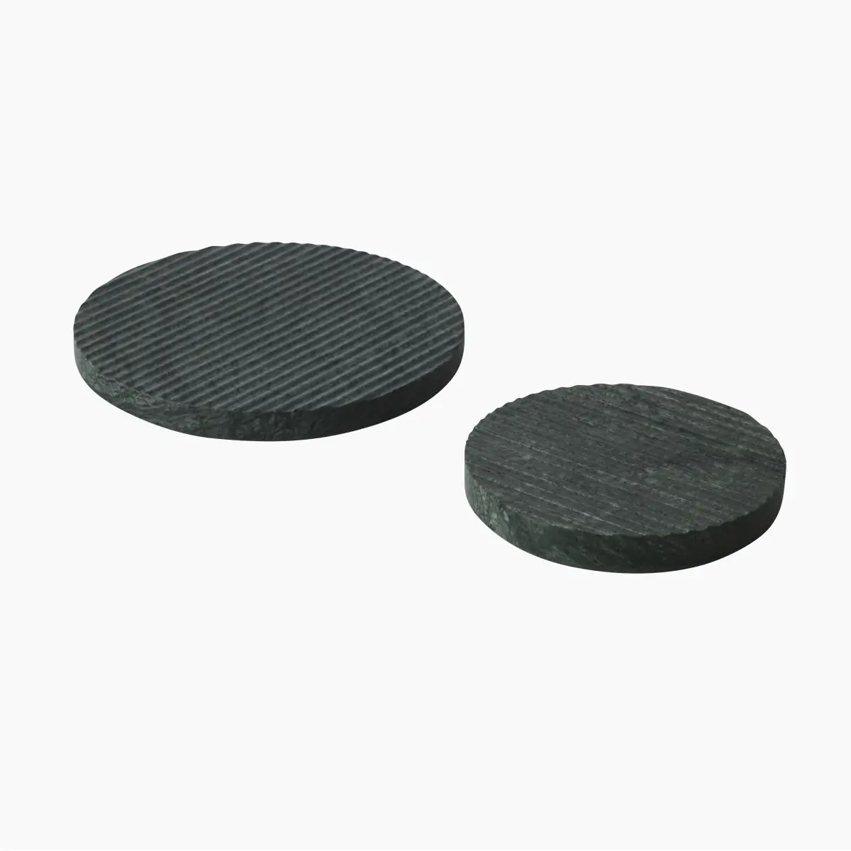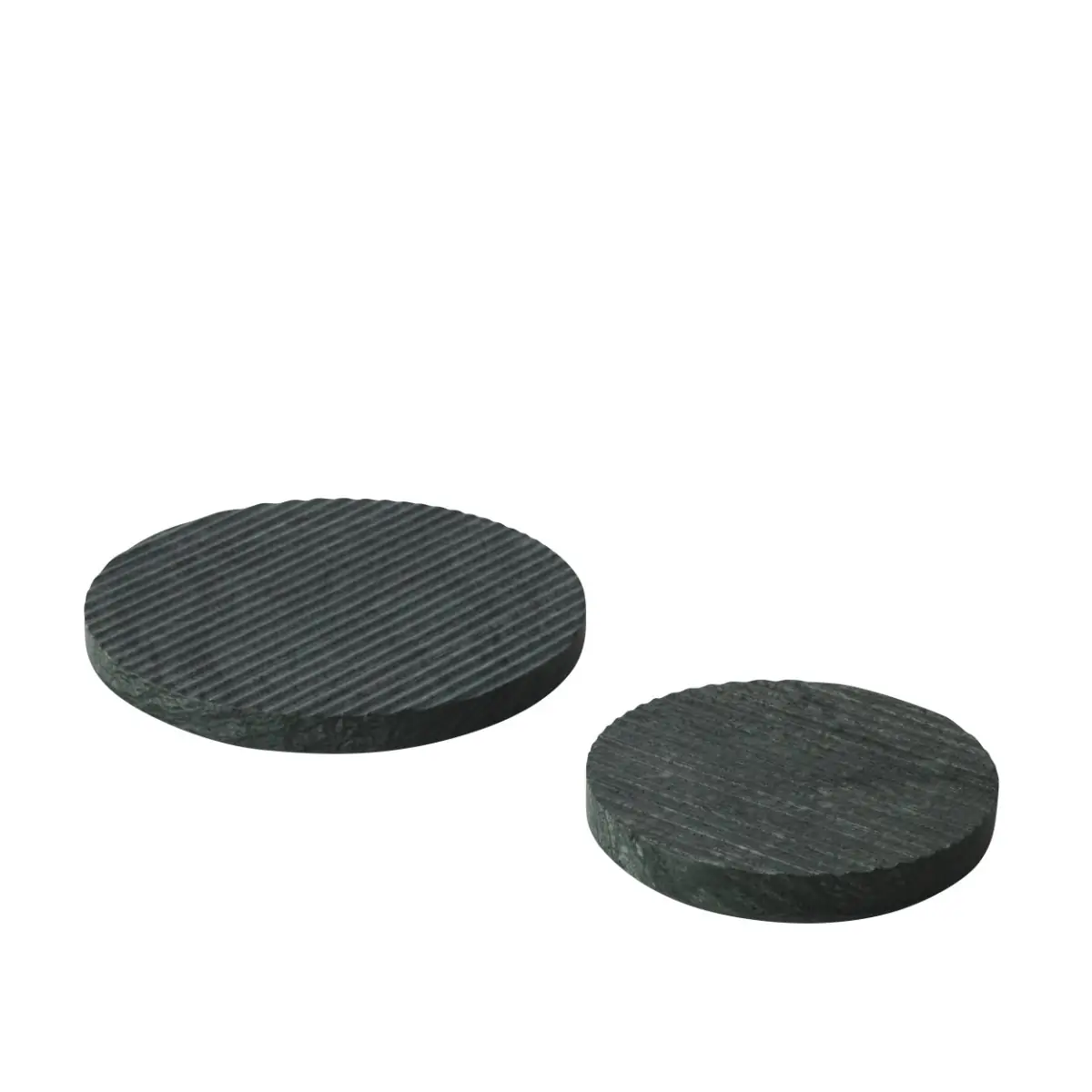 When used as a trivet for hot or cold items, the carved trenches of the Groove Trivet allows air to flow through, leaving the table underneath it undamaged. Though a functional object, the Groove Trivet can also be used as a decorative piece, whether it be as a tray, stand, or on its own, adding texture to any room. Visual variations of the marble render each piece entirely unique; the trivet is available in two sizes and three colors.