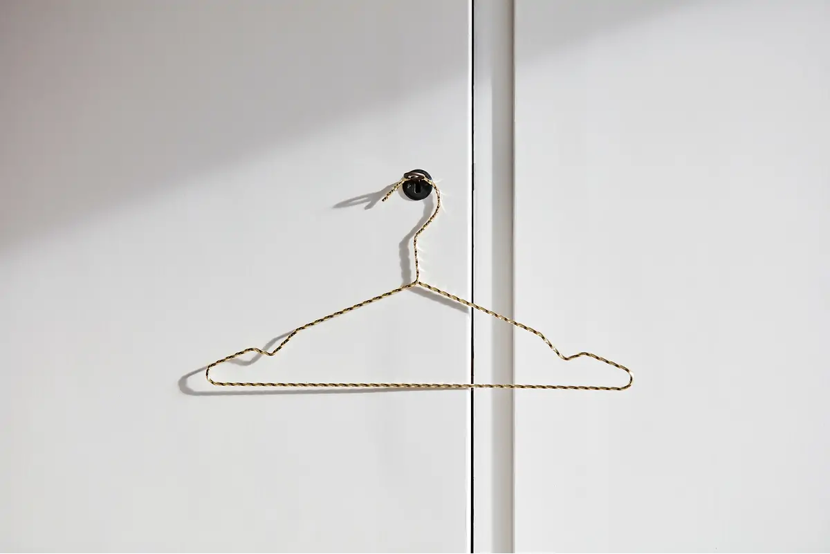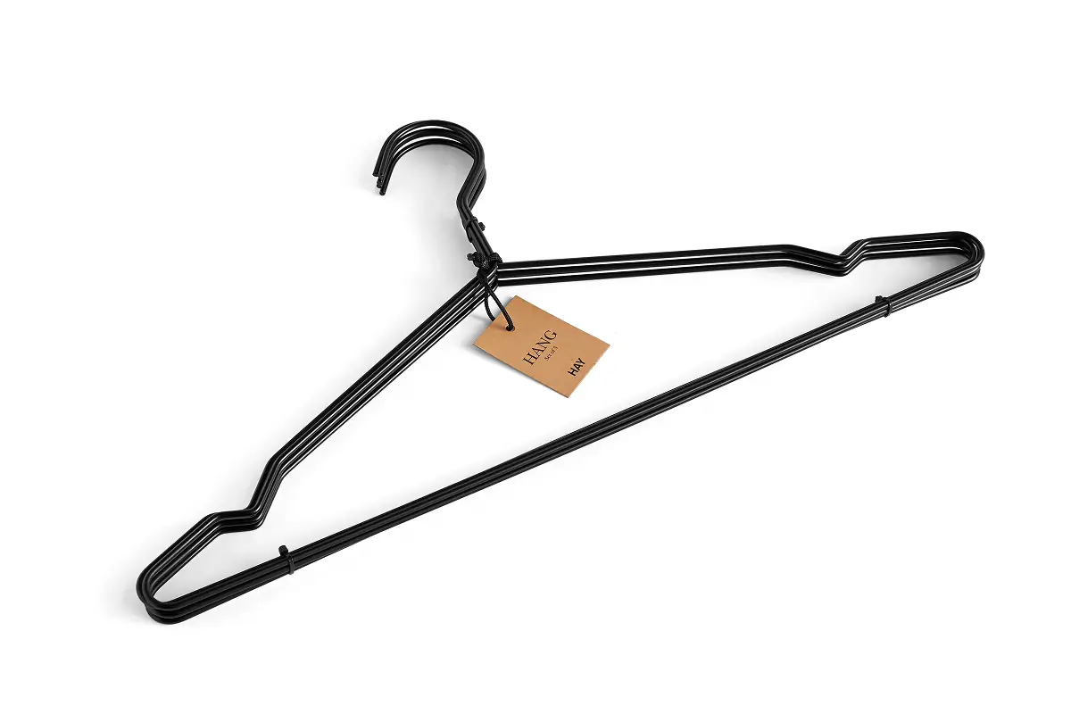 Hang is a minimalistic metal hanger that takes up less room in your closet, enabling you to store more clothes in the same amount of space. Made in wire, with different colour options.
