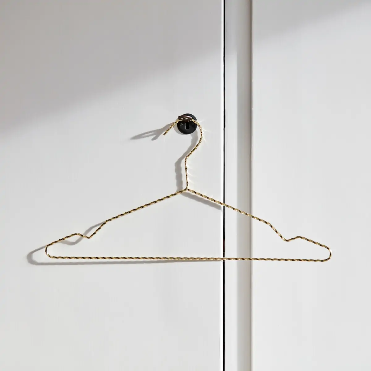 Hang is a minimalistic metal hanger that takes up less room in your closet, enabling you to store more clothes in the same amount of space. Made in wire, with different colour options.