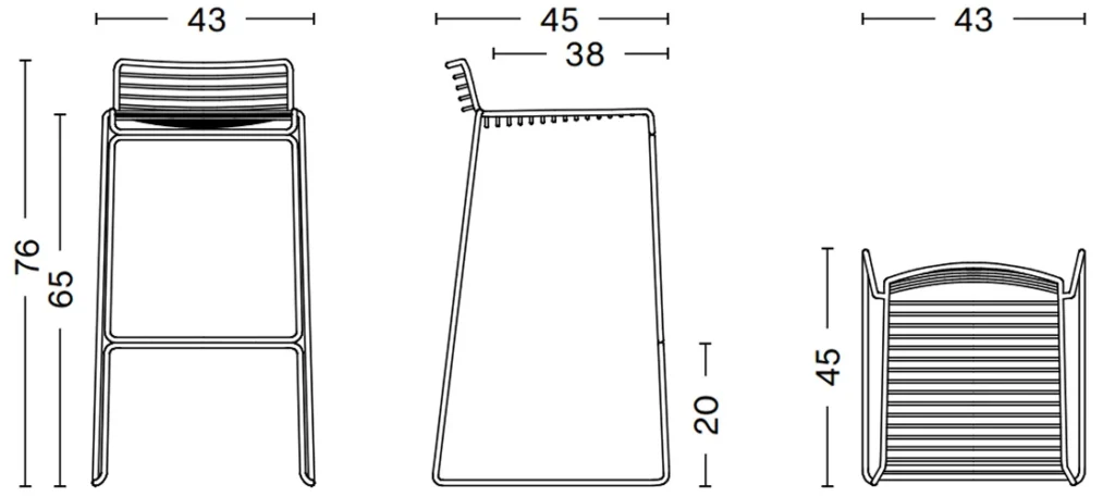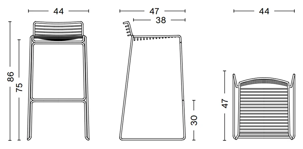 The Hee Stool from HAY is a stackable seating solution that offers versatility and practicality. Available in bar- or counter-height, this stool’s long, slender legs give it an elegant silhouette. Crafted from electro-galvanized, rust-resistant lacquered metal wire, it effortlessly transitions between indoor and outdoor settings, perfect for diverse environments from dining rooms to lobbies.
