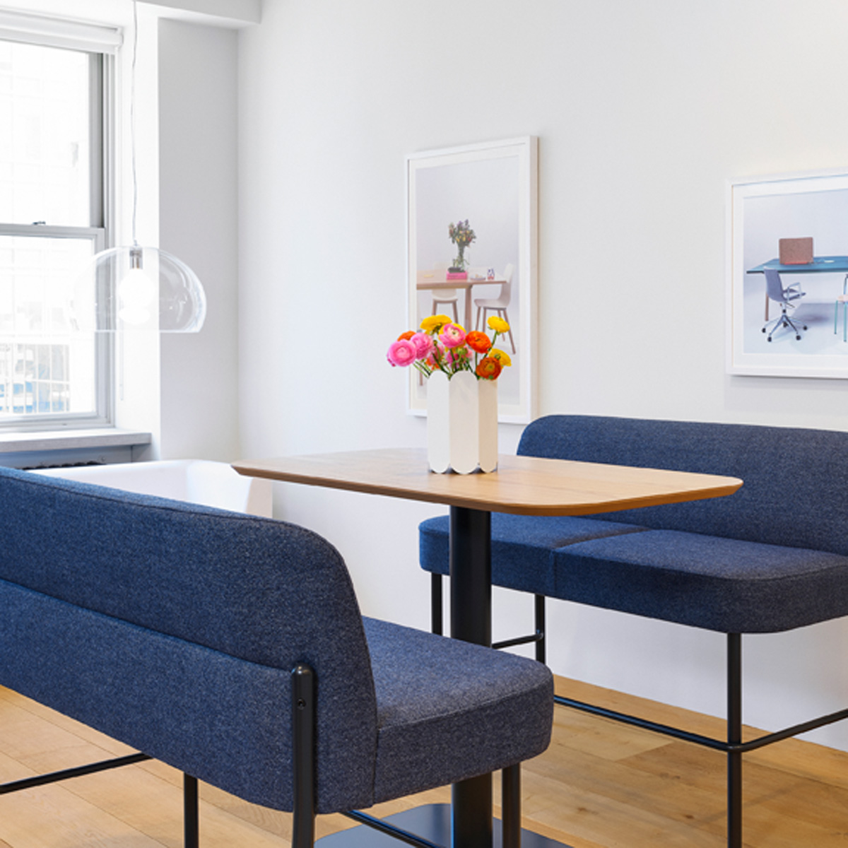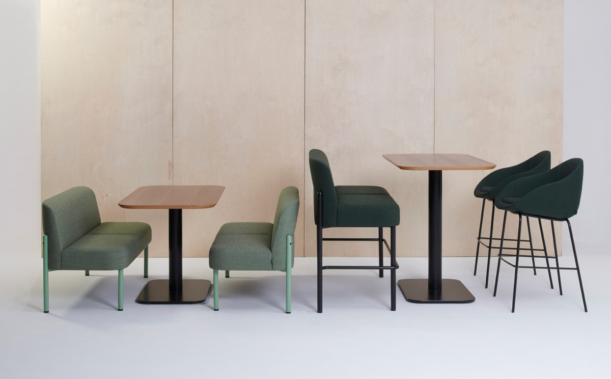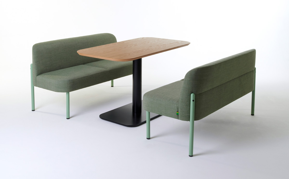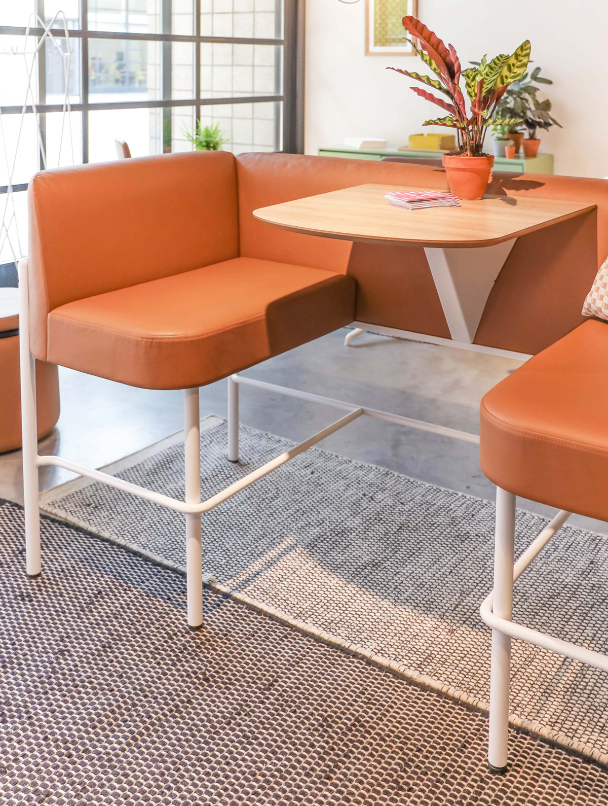 The Hue Seating collection from NaughtOne brings a luxurious sense of comfort and purpose to interstitial spaces. Hue Sofa is designed to accommodate pre- and post-meeting conversations with colleagues. The bar-height version of the Hue Sofa invites you to converse eye-to-eye with colleagues passing by and at standing height. And when combined with the Hue Table, this sofa also supports group or individual work. Hue Sofa is available in a range of fabrics and powder-coated finishes to complement your space.