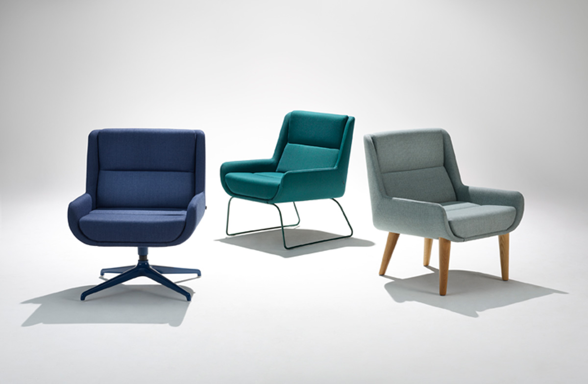 Hush Low is an elegant chameleon whose look changes completely depending on how you style it thanks to a host of upholstery choices and the option to go two-tone. The base can be specified as sled, 4-star, and wooden legs.