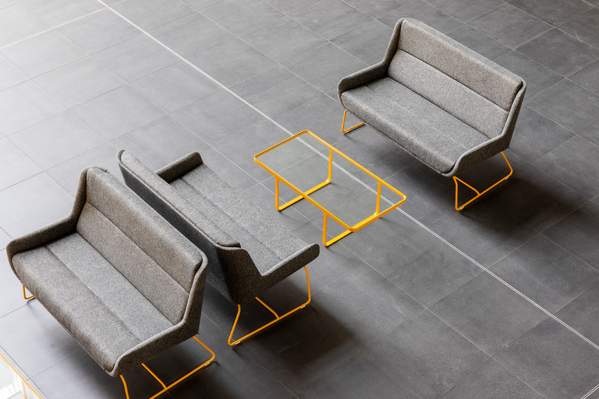 Specify Hush Low Sofa with your choice of base – sled in powder-coated steel or a host of RALs, or classic wood finishes – turn up the volume with two-tone, and style to the brief with NaughtOne’s near limitless fabric options.