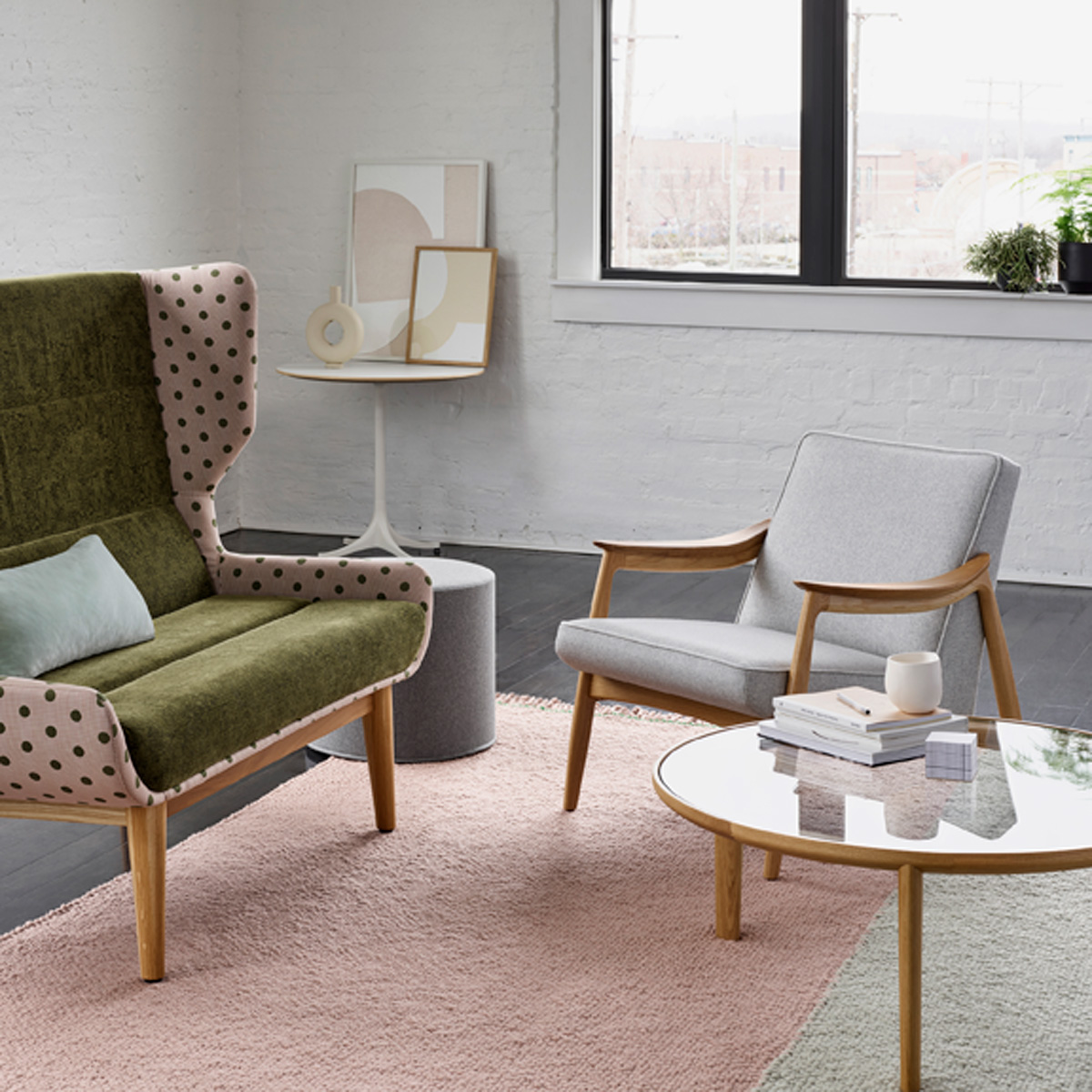The Hush Sofa from NaughtOne gives the wingback chair style a contemporary update. This sofa’s elegant, wraparound backrest creates a sense of intimacy, making it a comfortable place to relax, tackle individual work, or have private conversations with colleagues. A low back version offers a more scaled down back with a slimmer silhouette. Customize the Hush Sofa with your selection of bases and a range of fabric options to accommodate your space.