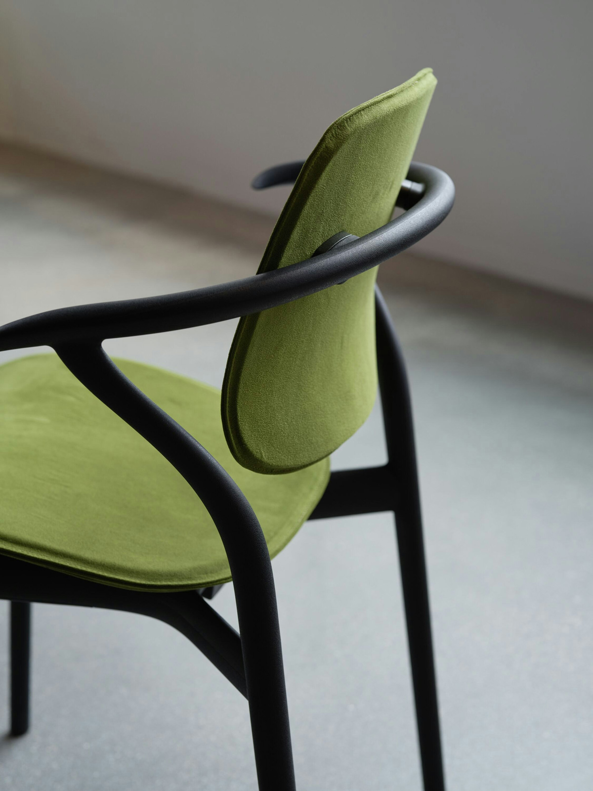 The armchair design in Ini Archibong’s Iquo Café Collection features an elegant, curved silhouette and one continuous frame that’s both light and resilient.