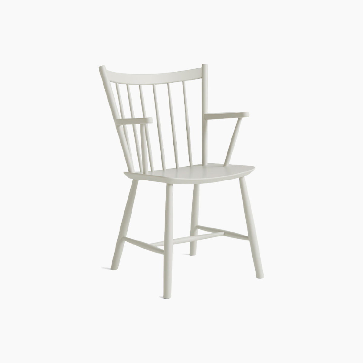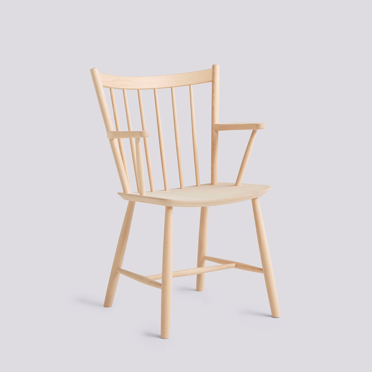 The J-Series Chair from HAY delivers a harmonious blend of lasting elegance and modern craftsmanship. Available as a side chair or armchair, this seat boasts a subtly slanted backrest and widely spaced spindles, ensuring both comfort and a minimalistic design. Crafted from solid oak or beech with a molded plywood seat, the J-Series chair will enhance any lounge or office setting.