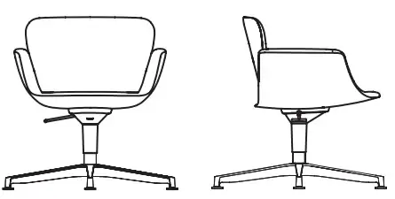 KN06, an armchair with a modernist spirit first presented in 2020 in the version with four fixed legs in cast aluminium, is now available in a height-adjustable swivel model with a four-star base on glides, or a five-star base on casters