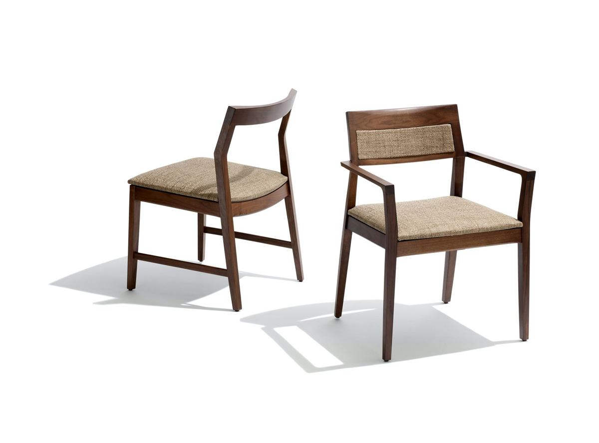Designed by Marc Krusin in 2011, The Krusin Guest Seating Collection draws inspiration from traditional chair designs, but asserts itself with an industrialized craft aesthetic. Leaving no joint unresolved and no angle unconsidered, the Krusin Collection’s subtle elegance harmonizes with any setting. Further enhancing its versatility, the chair is available in a broad array of natural woods, with low-sheen or high-polish finishes and can be styled with an upholstered or natural woven paper rush seat.