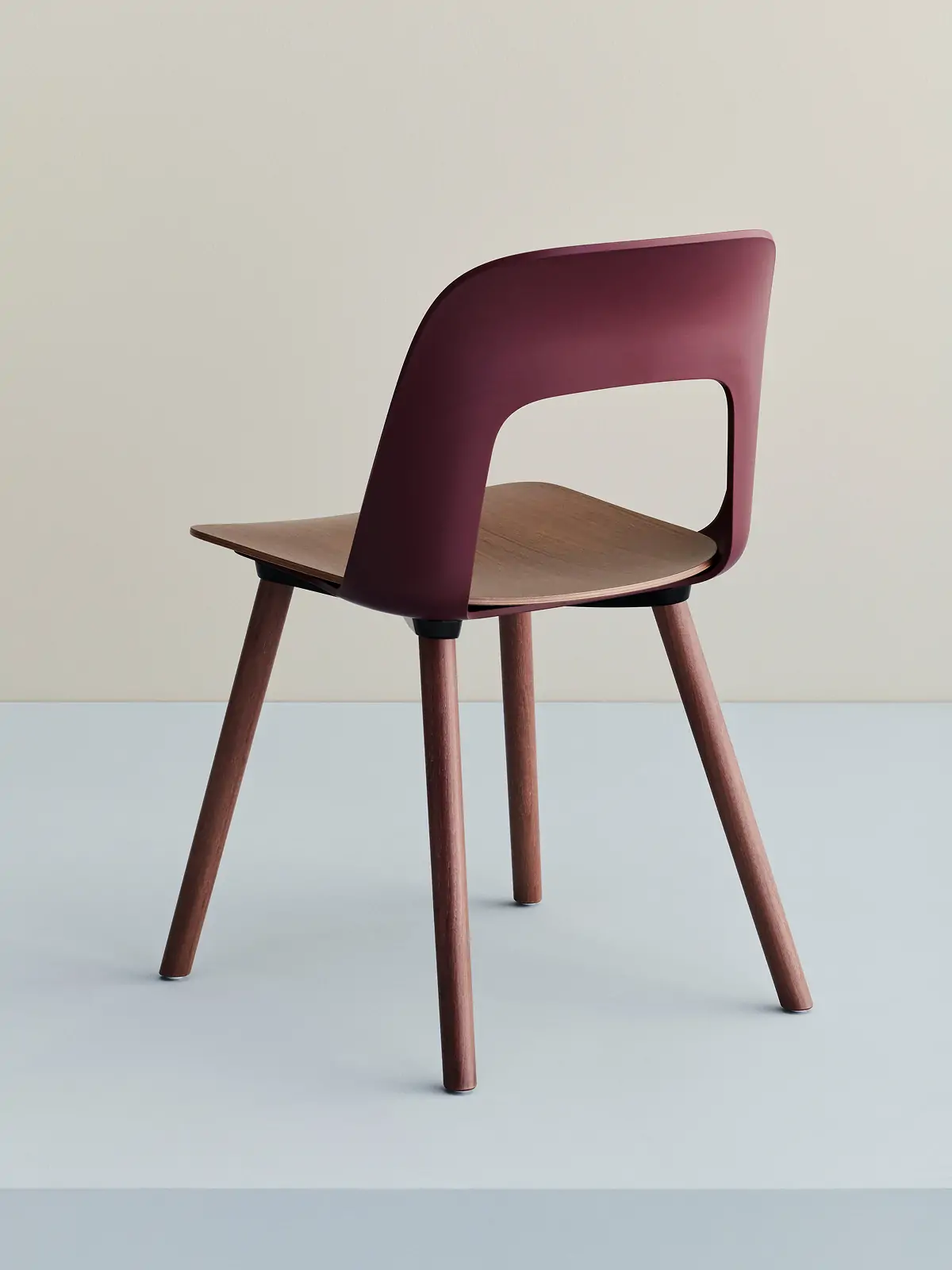 Designed by Julien Renault, Layout Chair 122 offers a flexible and innovative design shaped by a commitment to comfort, functionality, and circularity. Characterised by the opening in the backrest, this defining feature provides greater comfort while giving its appearance a sense of lightness and transparency. A plywood seat brings natural warmth, while rounded wooden legs provide stability and a timeless appeal, with all components designed for disassembly to extend the lifespan and enable refurbishment for long-term use. The shell is crafted from a minimum of 96% post-consumer recycled plastic and offered in a wide range of colours, with the seat offered in the same wood type and finish options as the base, making Layout a versatile and durable seating solution ideal for offices, restaurants, public institutions, and domestic settings.