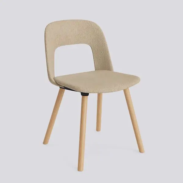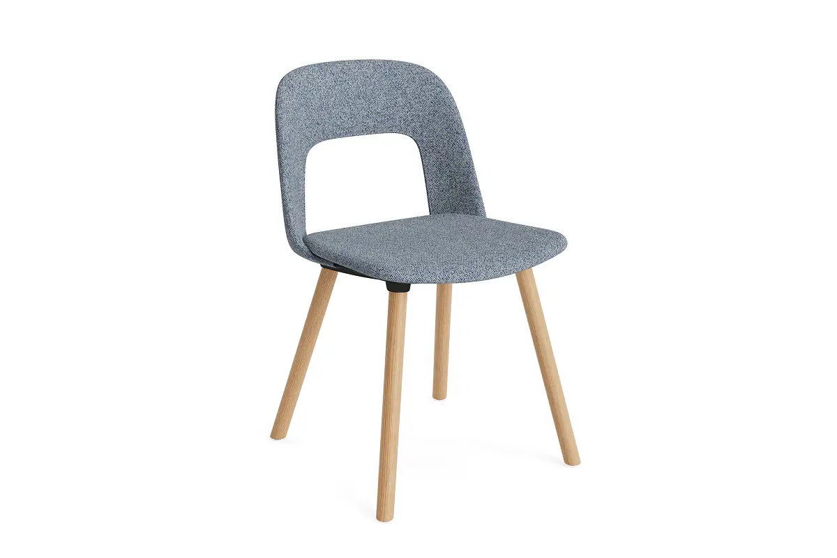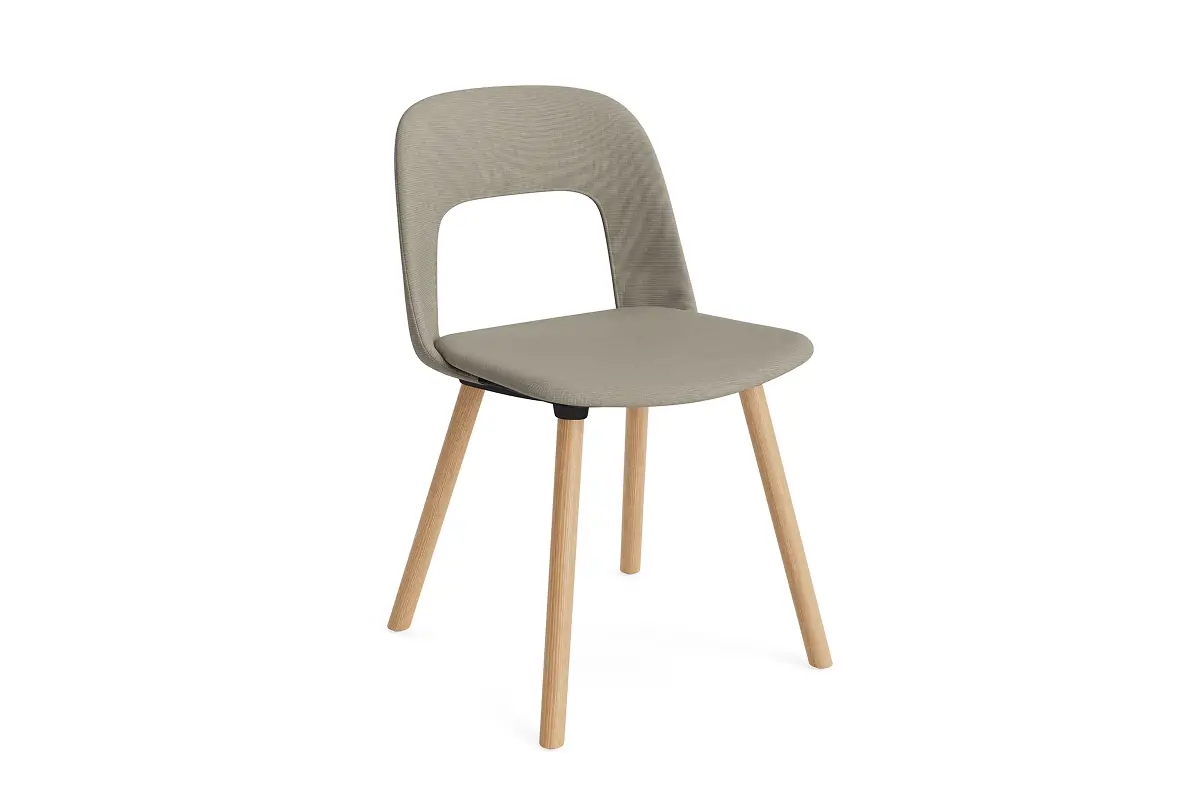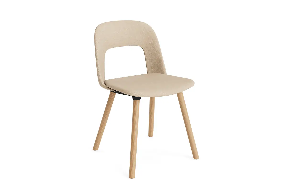Designed by Julien Renault, Layout Chair 124 offers a flexible and innovative design shaped by a commitment to comfort, functionality, and circularity. Characterised by the opening in the backrest, this defining feature provides greater comfort while giving its appearance a sense of lightness and transparency. Featuring an upholstered seat and back for a warm, inviting expression and rounded wooden legs that provide stability and a timeless appeal, all chair components can be fully disassembled to extend its lifespan and enable refurbishment for long-term use. The shell is crafted from a minimum of 96% post-consumer recycled plastic, with the base offered in different wood types. The upholstered seat and back are available in a variety of fabrics and olive-leaf tanned leather options, making Layout a versatile and durable seating solution ideal for offices, restaurants, public institutions,