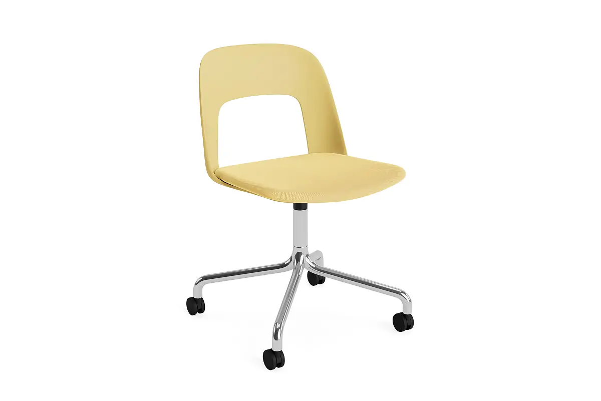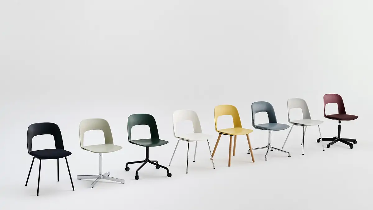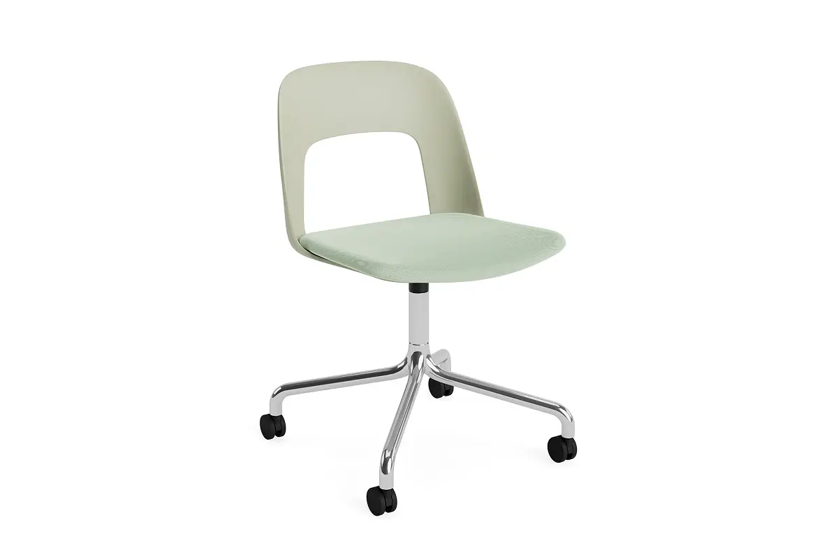 Designed by Julien Renault, Layout Chair 163 offers a flexible and innovative design shaped by a commitment to comfort, functionality, and circularity. Characterised by the opening in the backrest, this defining feature provides greater comfort while giving its appearance a sense of lightness and transparency. Featuring an upholstered seat for a warm, inviting expression and an aluminium swivel four-star arc base with castors that balances elegant aesthetics and ease of movement, all chair components can be fully disassembled to extend its lifespan and enable refurbishment for long-term use. The shell is crafted from a minimum of 96% post-consumer recycled plastic and offered in a wide range of colours, with the upholstered seat available in a variety of fabric and olive-leaf tanned leather options, making Layout a versatile and durable seating solution ideal for most corporate