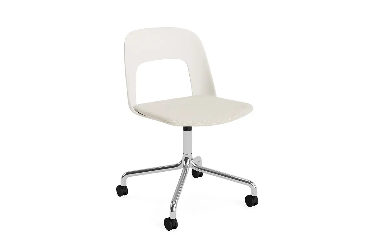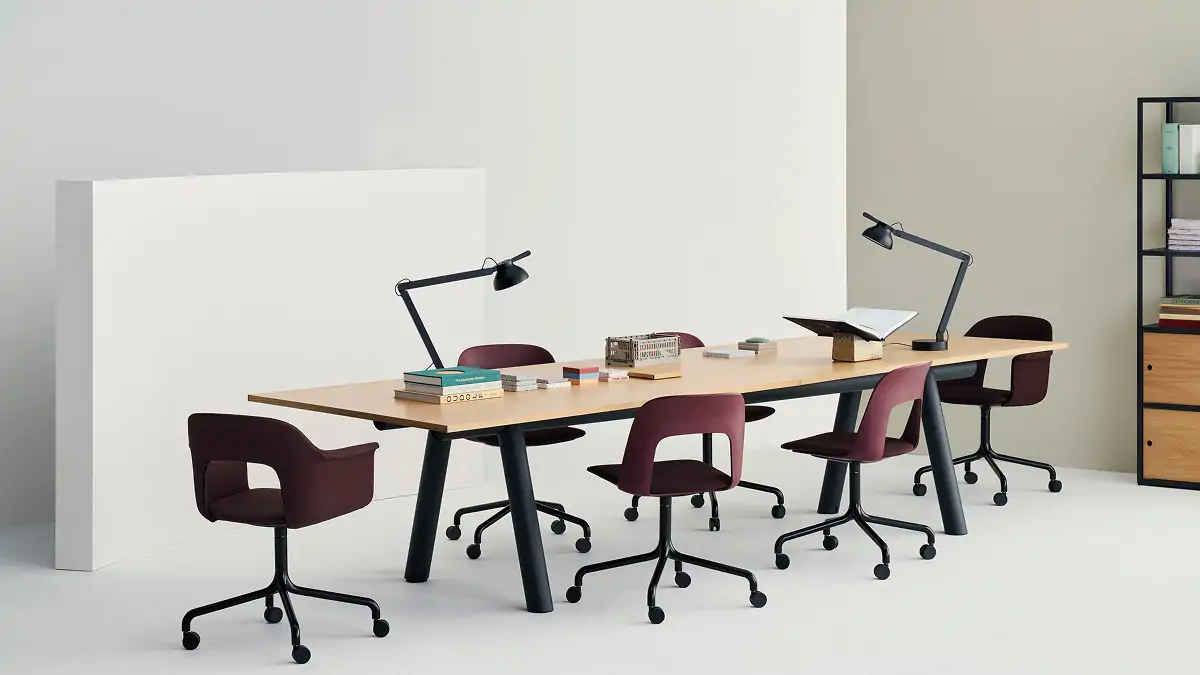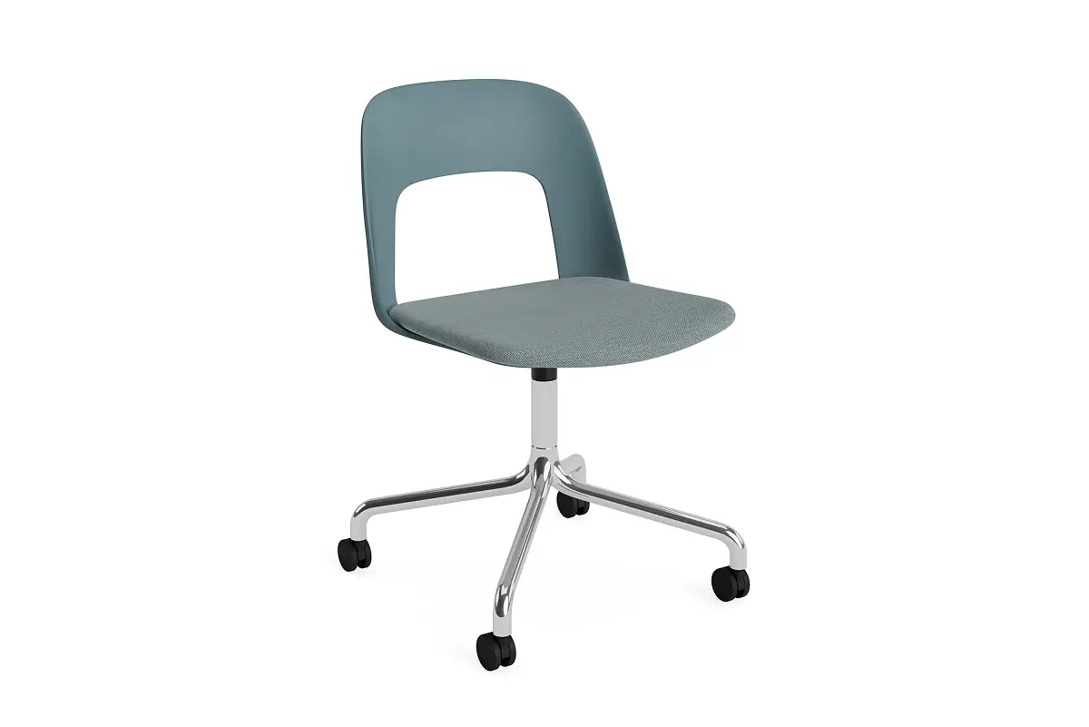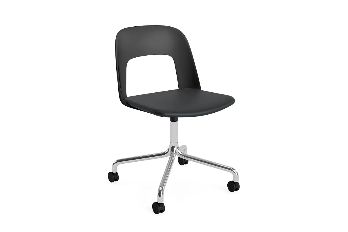 Designed by Julien Renault, Layout Chair 163 offers a flexible and innovative design shaped by a commitment to comfort, functionality, and circularity. Characterised by the opening in the backrest, this defining feature provides greater comfort while giving its appearance a sense of lightness and transparency. Featuring an upholstered seat for a warm, inviting expression and an aluminium swivel four-star arc base with castors that balances elegant aesthetics and ease of movement, all chair components can be fully disassembled to extend its lifespan and enable refurbishment for long-term use. The shell is crafted from a minimum of 96% post-consumer recycled plastic and offered in a wide range of colours, with the upholstered seat available in a variety of fabric and olive-leaf tanned leather options, making Layout a versatile and durable seating solution ideal for most corporate