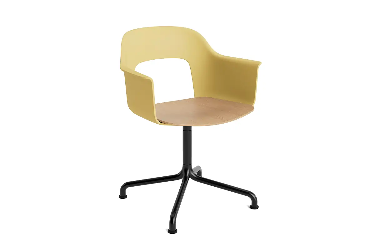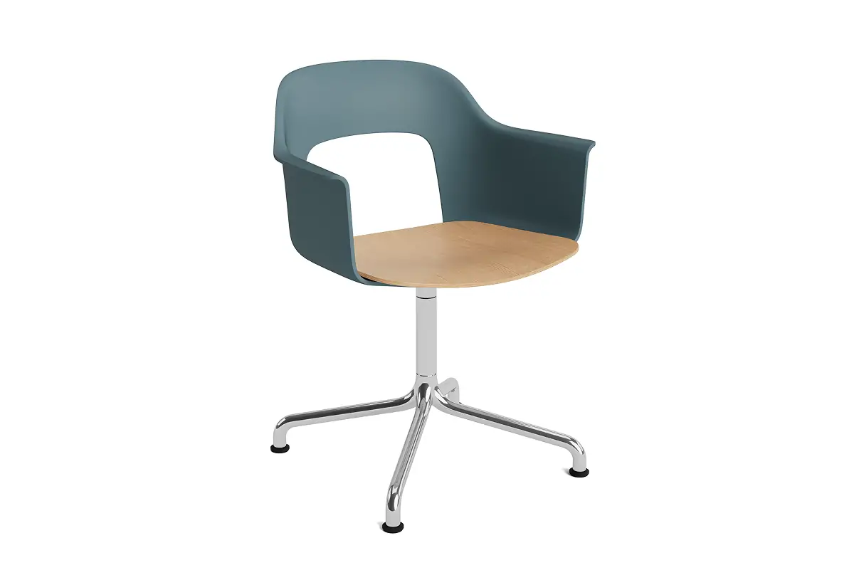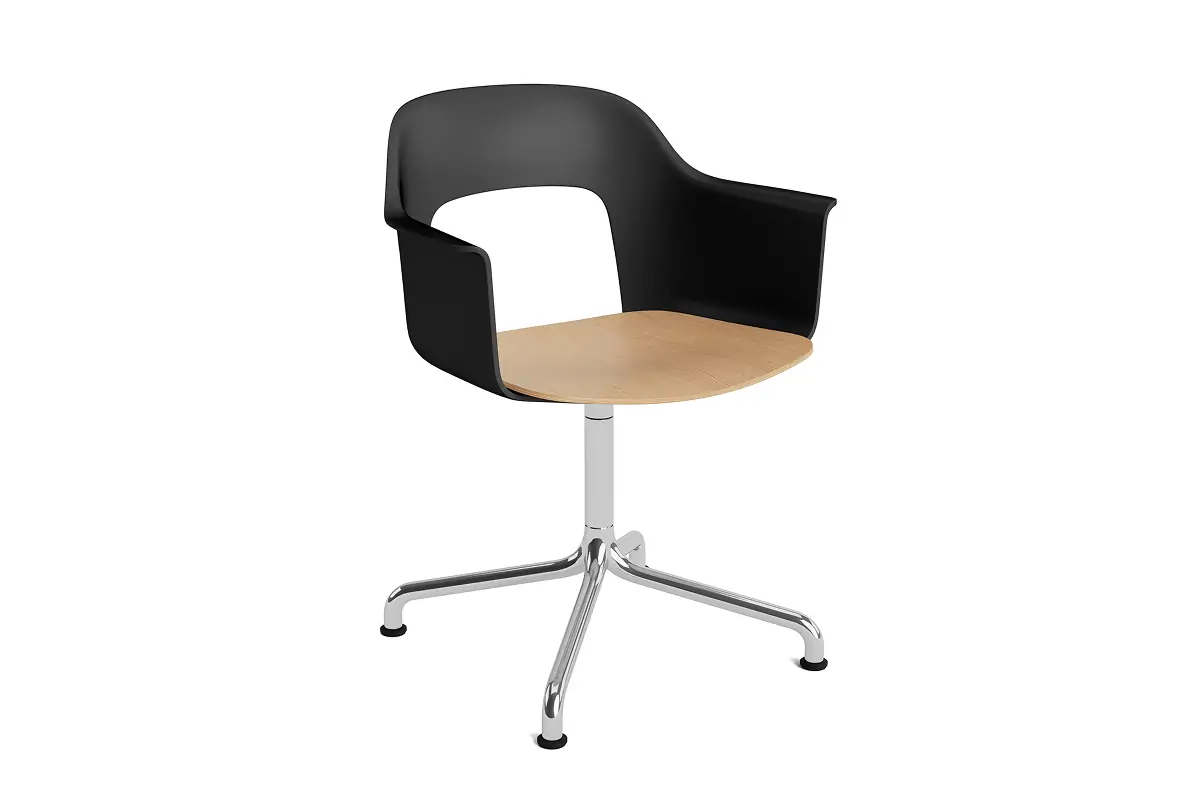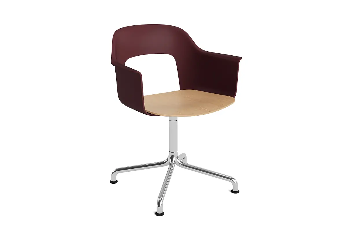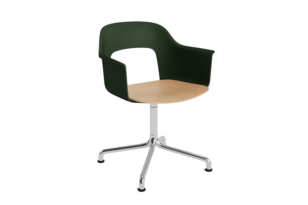 Designed by Julien Renault, Layout Armchair 252 offers a flexible and innovative design shaped by a commitment to comfort, functionality, and circularity. Characterised by the opening in the backrest, this defining feature provides greater comfort while giving its appearance a sense of lightness and transparency. A plywood seat brings natural warmth, while the aluminium swivel four-star arc base balances elegant aesthetics and ease of movement, with all components designed for disassembly to extend the lifespan and enable refurbishment for long-term use. The shell is crafted from a minimum of 96% post-consumer recycled plastic and offered in a wide range of colours, with the seat offered in several finishes, making Layout a versatile and durable seating solution ideal for most corporate settings and domestic environments.