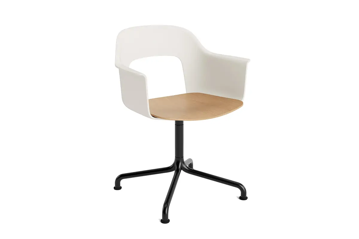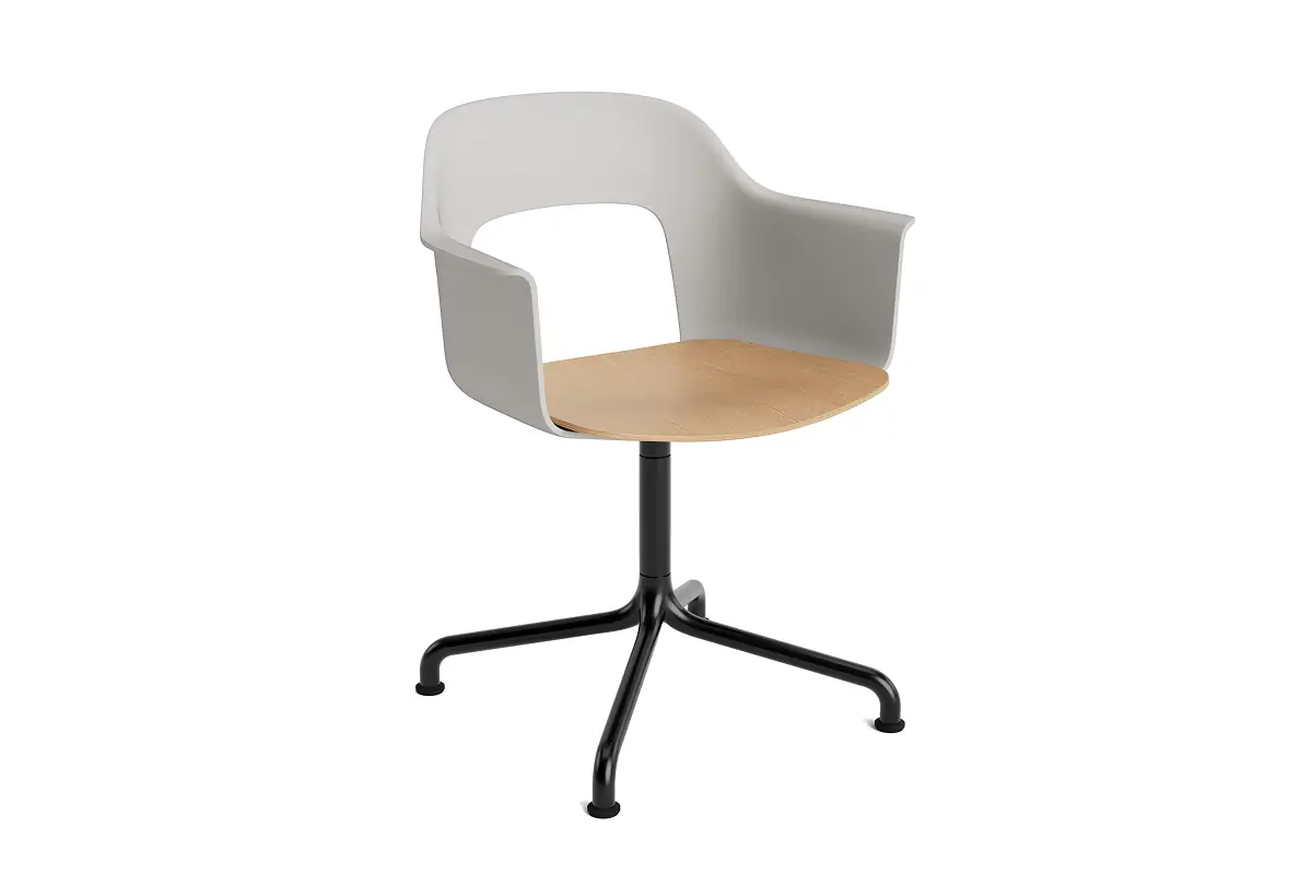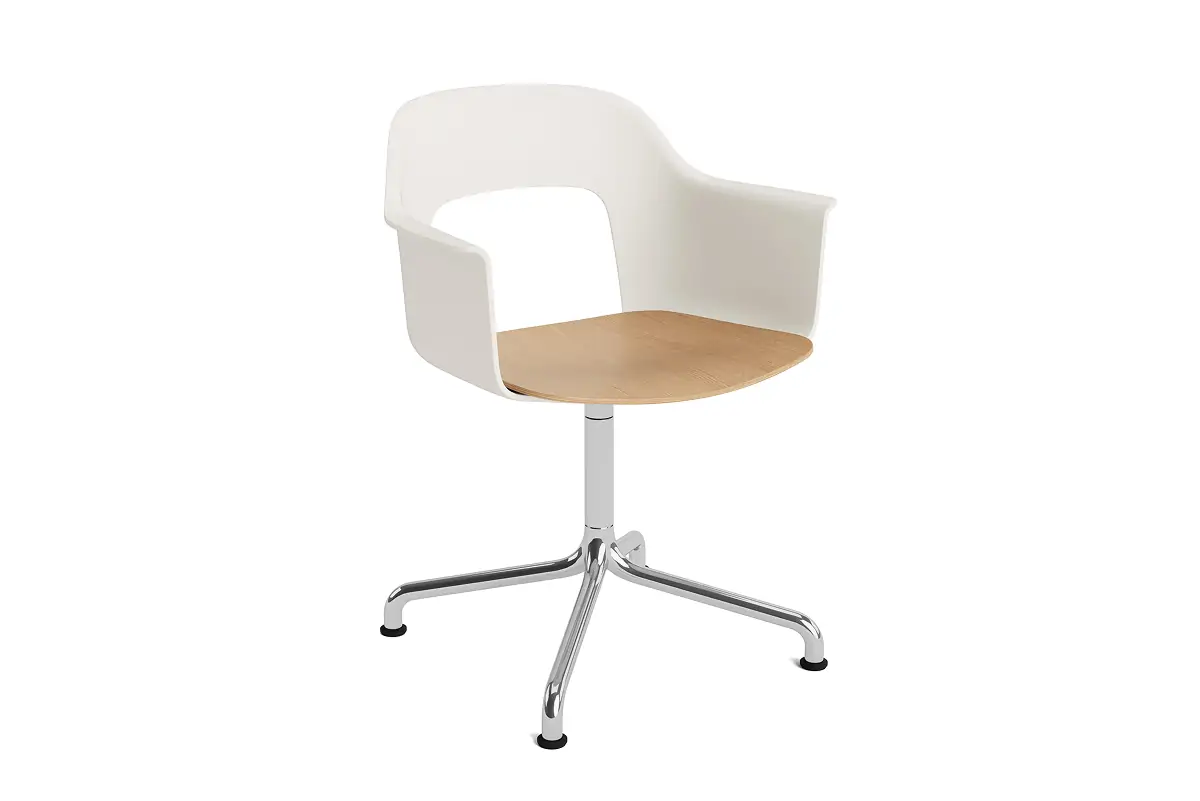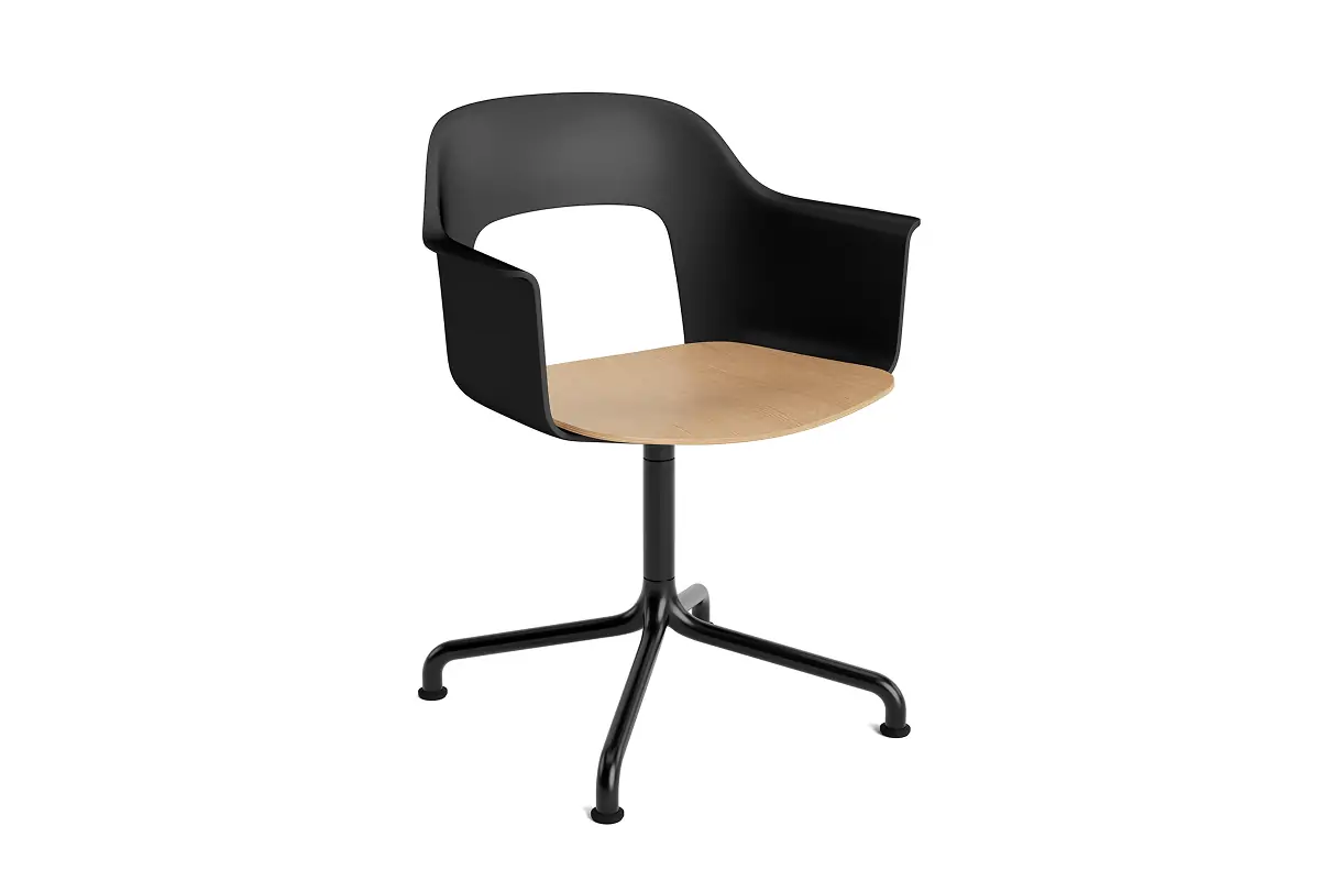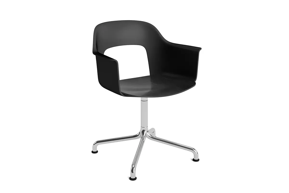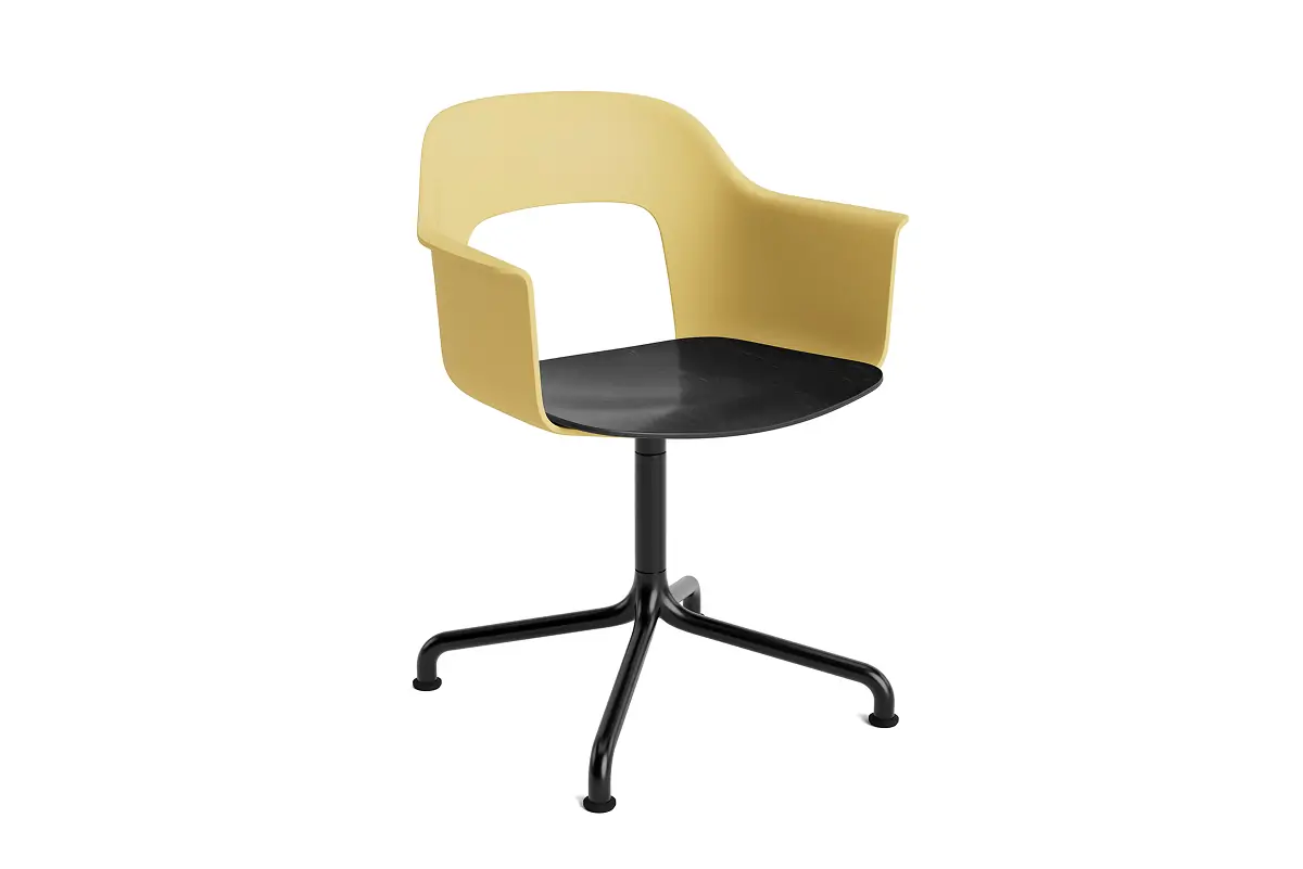 Designed by Julien Renault, Layout Armchair 252 offers a flexible and innovative design shaped by a commitment to comfort, functionality, and circularity. Characterised by the opening in the backrest, this defining feature provides greater comfort while giving its appearance a sense of lightness and transparency. A plywood seat brings natural warmth, while the aluminium swivel four-star arc base balances elegant aesthetics and ease of movement, with all components designed for disassembly to extend the lifespan and enable refurbishment for long-term use. The shell is crafted from a minimum of 96% post-consumer recycled plastic and offered in a wide range of colours, with the seat offered in several finishes, making Layout a versatile and durable seating solution ideal for most corporate settings and domestic environments.