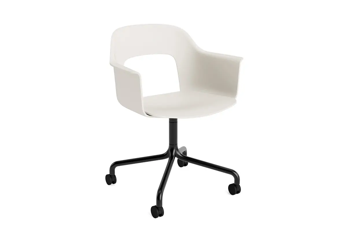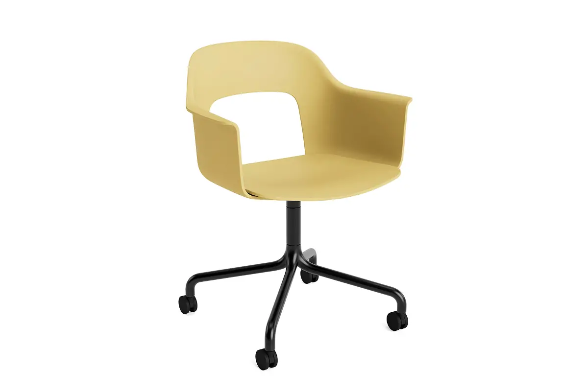 Designed by Julien Renault, Layout Armchair 261 offers a flexible and innovative design shaped by a commitment to comfort, functionality, and circularity. Characterised by the opening in the backrest, this defining feature provides greater comfort while giving its appearance a sense of lightness and transparency. The aluminium swivel four-star arc base with castors balances elegant aesthetics and ease of movement, with all chair components designed to be fully disassembled to extend its lifespan and enable refurbishment for long-term use. The shell is crafted from a minimum of 96% post-consumer recycled plastic and offered in a wide range of colours, making Layout a versatile and durable seating solution ideal for most corporate settings and domestic environments.