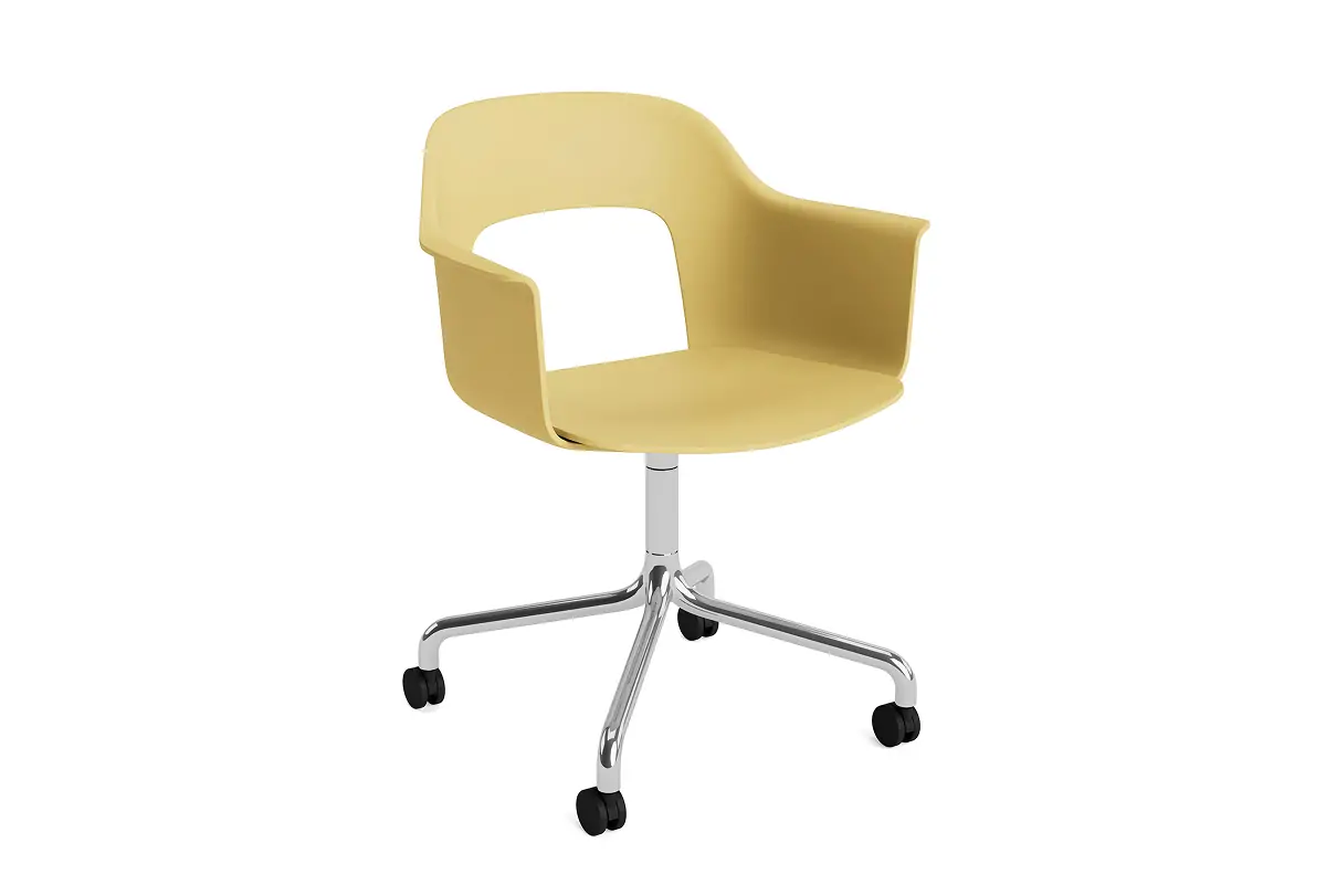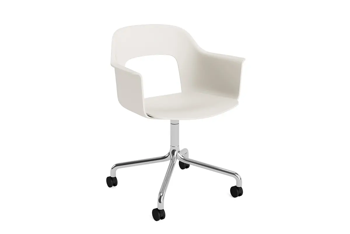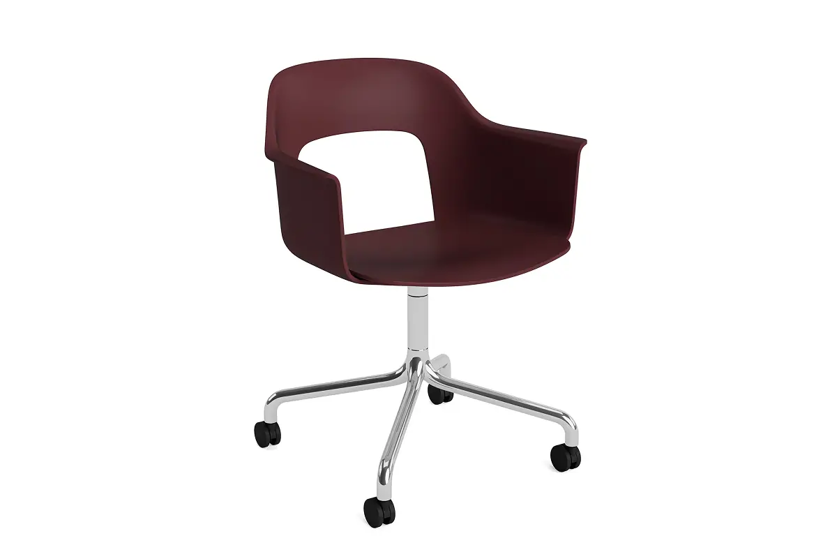 Designed by Julien Renault, the Layout Armchair 261- 264 variants offer a flexible and innovative design shaped by a commitment to comfort, functionality, and circularity. Characterised by the opening in the backrest, this defining feature provides greater comfort while giving its appearance a sense of lightness and transparency. The aluminium swivel four-star arc base with castors balances elegant aesthetics and ease of movement, with all chair components designed to be fully disassembled to extend its lifespan and enable refurbishment for long-term use. The shell is crafted from a minimum of 96% post-consumer recycled plastic and offered in a variety of colours, which can be combined with different seat options or a fully upholstered seat for added comfort, making Layout a versatile and durable seating solution ideal for offices, restaurants, public institutions, and domestic environments.
