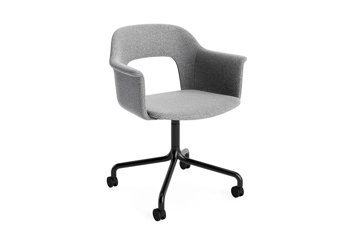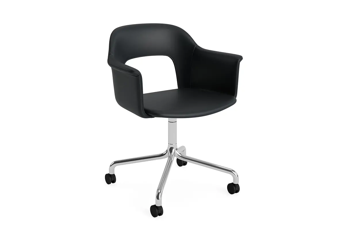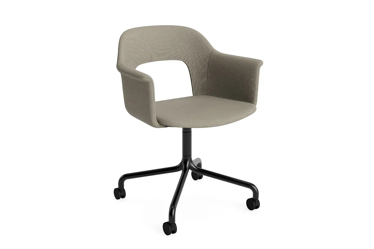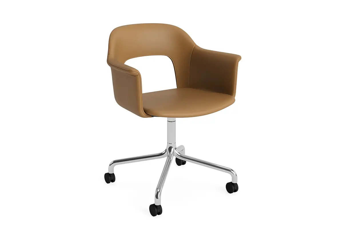 Designed by Julien Renault, Layout Armchair 264 offers a flexible and innovative design shaped by a commitment to comfort, functionality, and circularity. Characterised by the opening in the backrest, this defining feature provides greater comfort while giving its appearance a sense of lightness and transparency. Featuring an upholstered seat and back for a warm, inviting expression and an aluminium swivel four-star arc base with castors that balances elegant aesthetics and ease of movement, all chair components can be fully disassembled to extend its lifespan and enable refurbishment for long-term use. The shell is crafted from a minimum of 96% post-consumer recycled plastic, with the upholstered seat and back available in a variety of fabrics and olive-leaf tanned leather options, making Layout a versatile and durable seating solution ideal for most corporate settings and domestic