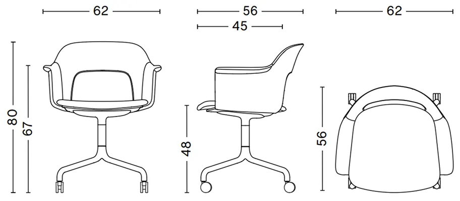Designed by Julien Renault, the Layout Armchair 261- 264 variants offer a flexible and innovative design shaped by a commitment to comfort, functionality, and circularity. Characterised by the opening in the backrest, this defining feature provides greater comfort while giving its appearance a sense of lightness and transparency. The aluminium swivel four-star arc base with castors balances elegant aesthetics and ease of movement, with all chair components designed to be fully disassembled to extend its lifespan and enable refurbishment for long-term use. The shell is crafted from a minimum of 96% post-consumer recycled plastic and offered in a variety of colours, which can be combined with different seat options or a fully upholstered seat for added comfort, making Layout a versatile and durable seating solution ideal for offices, restaurants, public institutions, and domestic environments.