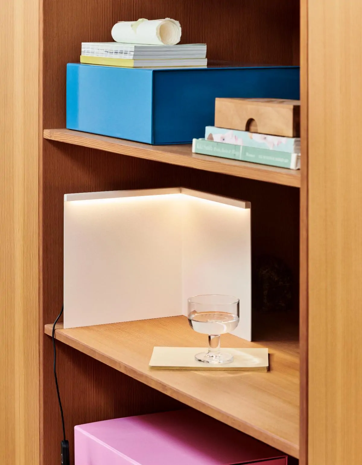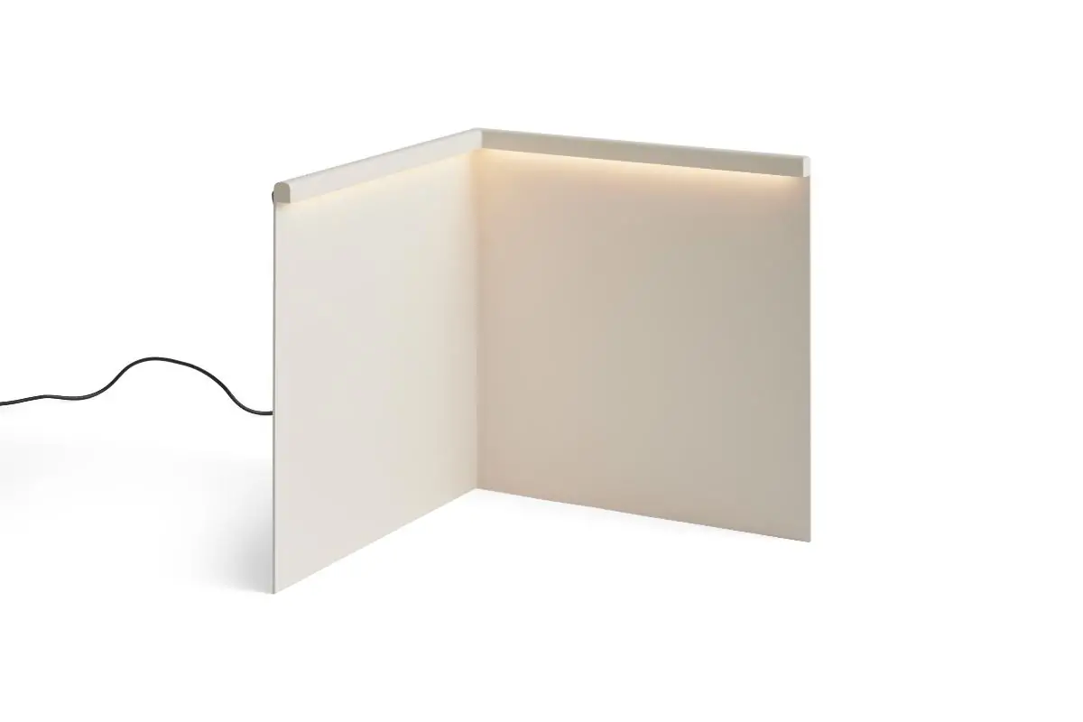 Inspired by the innovative architecture of fellow Mexican Luis Barragan, Moisés Hernández designed the LBM Corner Table Lamp to reflect his fascination with monolithic geometry, colour, light and shadows. Constructed from thin planes of vertical sheet steel at a 90-degree angle, the utilitarian simplicity of the shape results in visual lightness with a strong design, giving it an artistic quality that is equally appealing both when in use and switched off. The straight, folded structure can be positioned on the corner of any flat surface, using an integrated LED light with inline step dimmer to emit an ambient downlight that creates a subtle gradient effect with a unique, calming atmosphere. Featuring a sand finish powder coating in a creamy white tone, LBM’s functionality and deliberately uncluttered design makes it suitable for a wide range of spaces and uses in domestic and corporate environments.