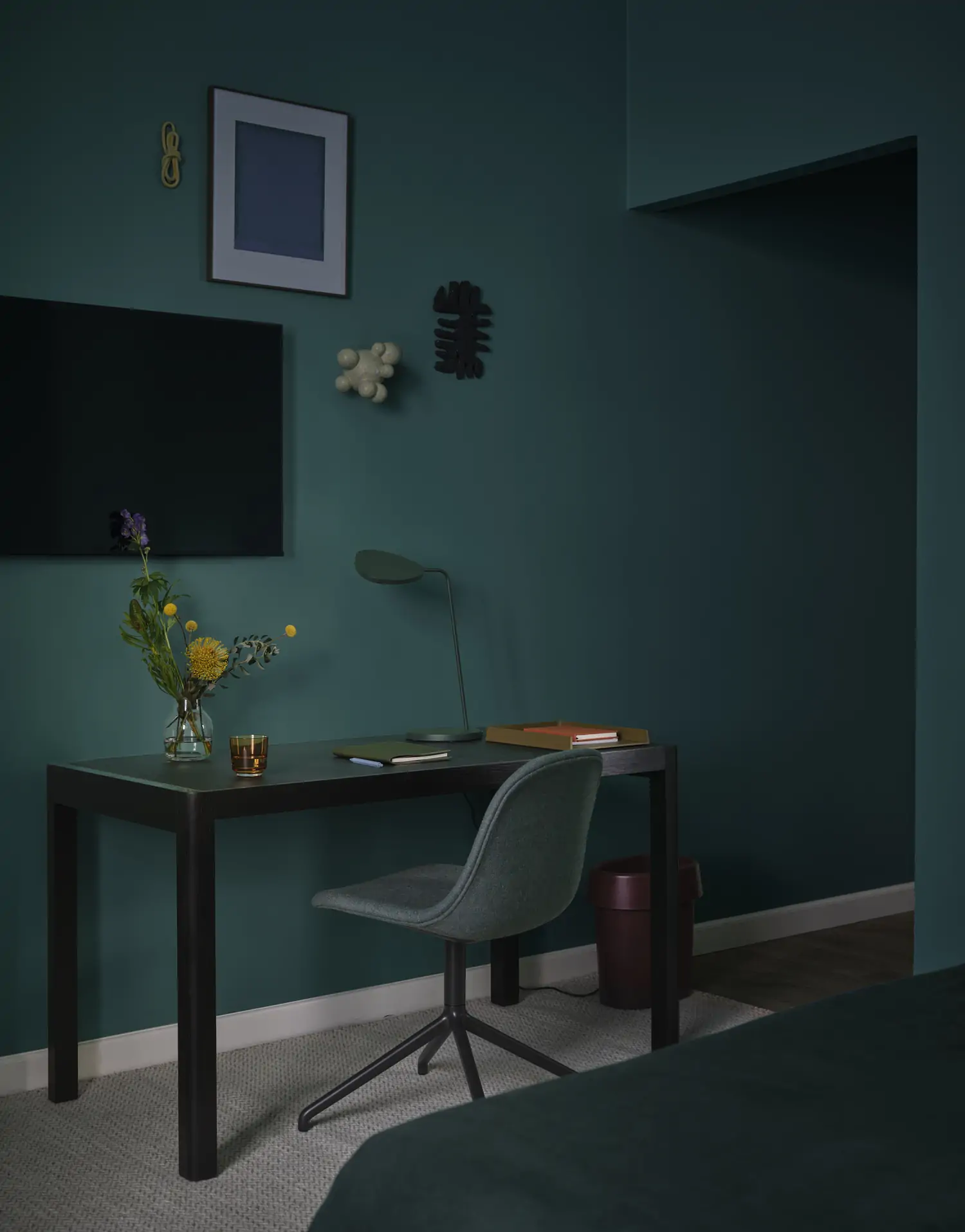 With its elegantly simple lines, the Leaf Table Lamp brings ambient as well as direct lighting to any space, paired with its organic shape that is inspired by the leaves of a tree. The design features a dimmable LED light alongside a turnable head, allowing for its user to position the light as desired for one’s individual space and atmosphere.