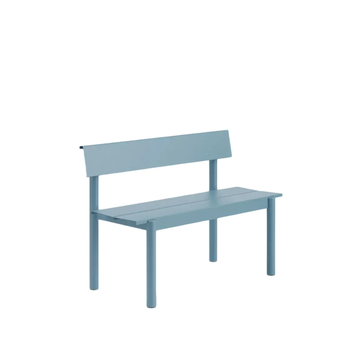 The Linear Steel Bench with Backrest combines comfort with a clear, modern expression. Its sculptural form works well as a standalone piece or alongside other designs in the Linear Steel family, offering versatility for a variety of outdoor settings. Defined by clean lines and understated details, the bench brings a fresh and refined presence to terraces, gardens, and public spaces. Made from durable, powder-coated steel, it is designed to withstand the elements while maintaining its long-lasting aesthetics. With the addition of a supportive backrest, the design enhances seating comfort while retaining the minimal character of the Linear Steel family.