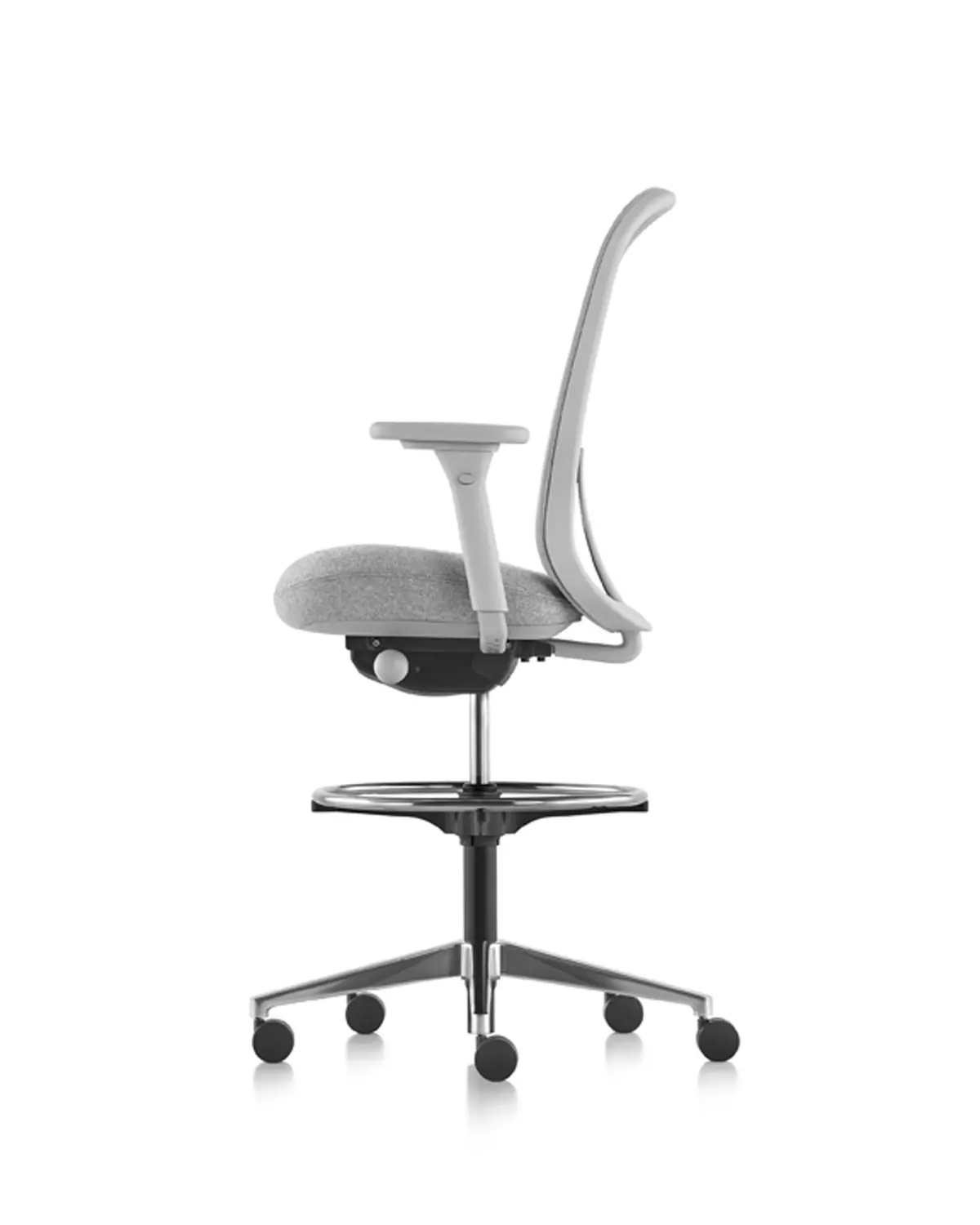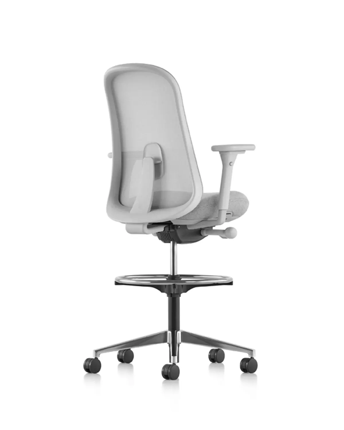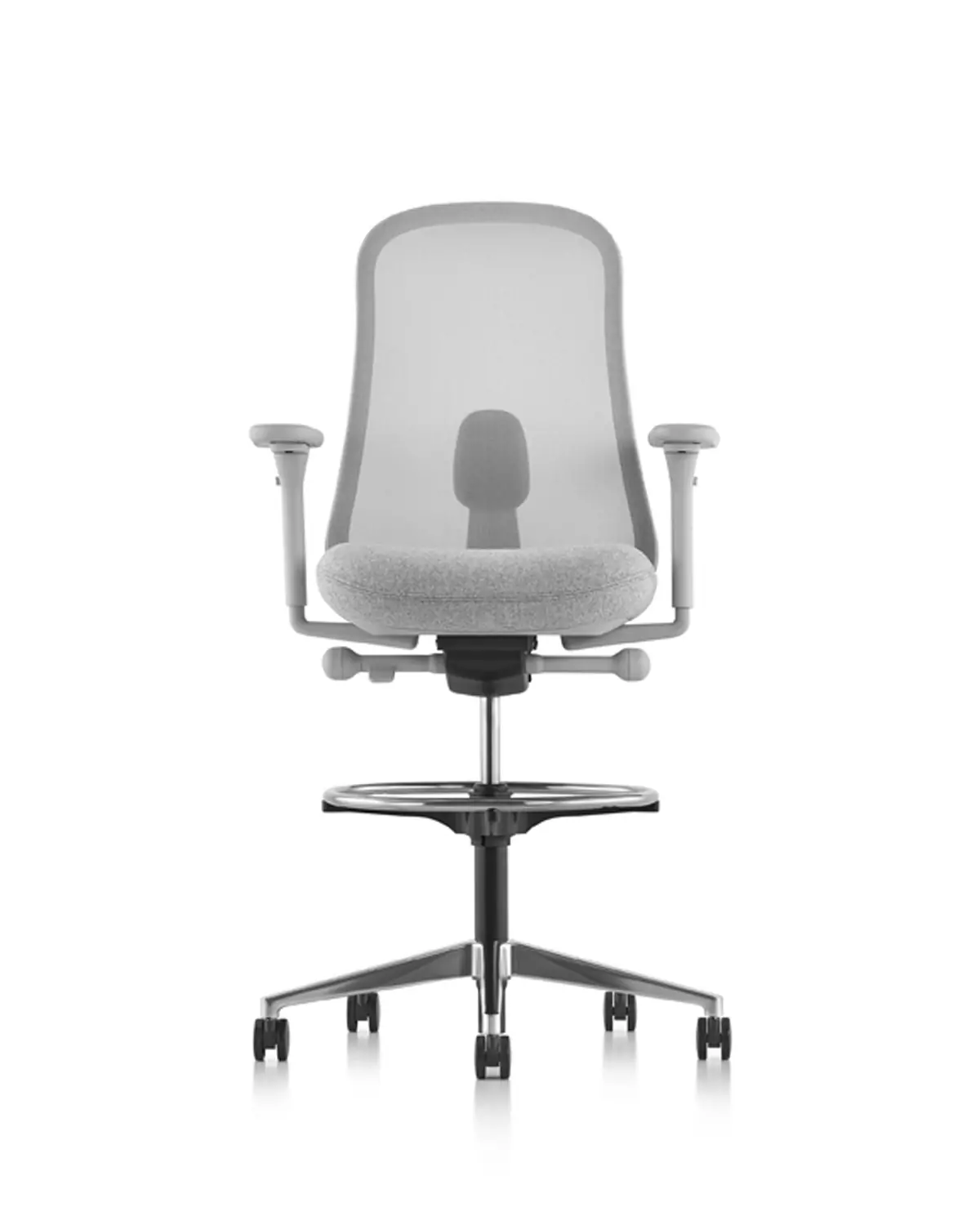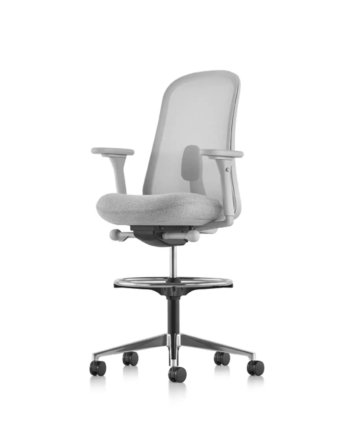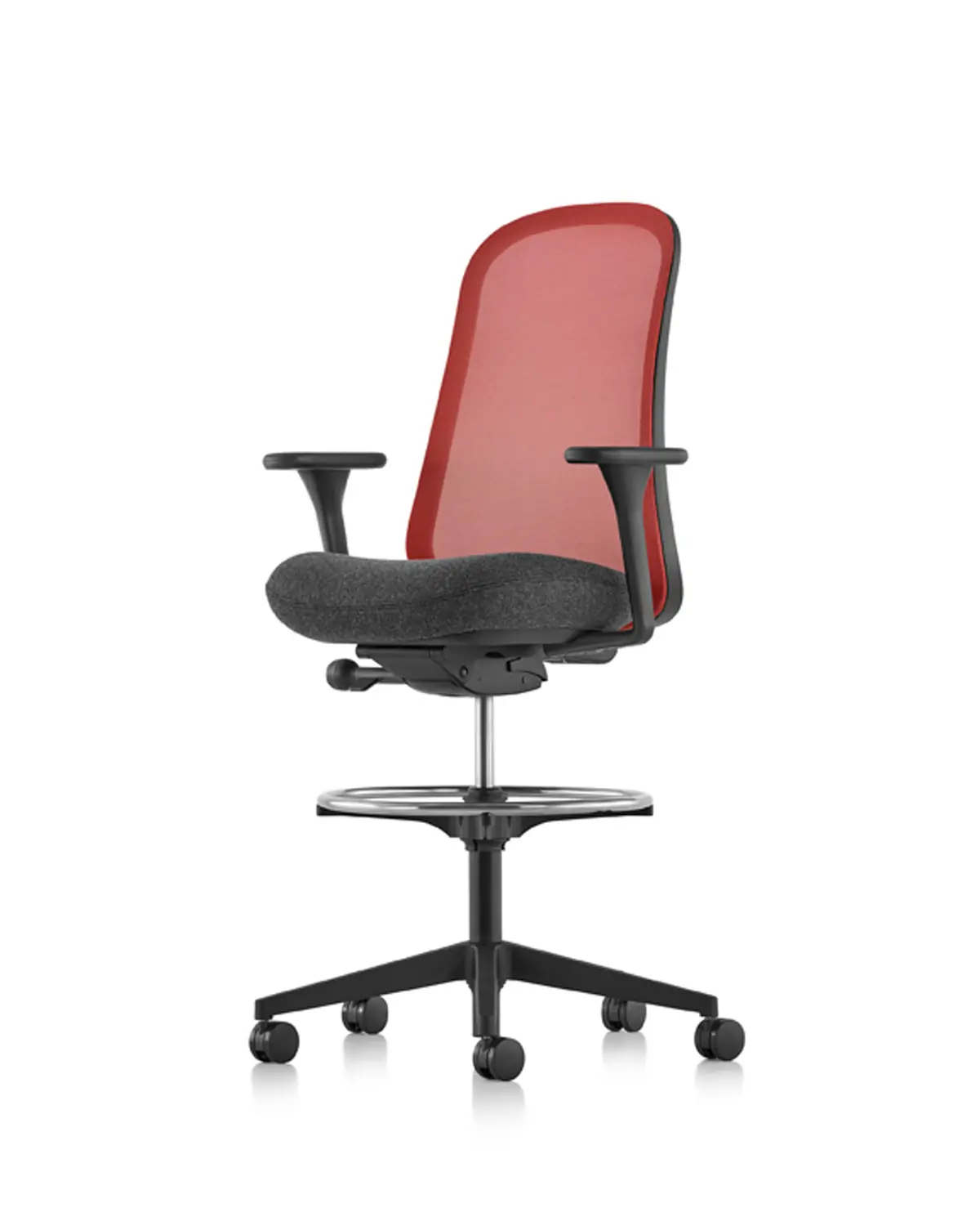 The Lino Stool from Herman Miller offers science-based ergonomic benefits at a great value. This comfortable office stool features Duo Suspension—a woven breathable seat back with integrated lumbar support that works with the contoured seat pad to support your spine from top to bottom. It also features an adjustable tilt that allows you to adapt this ergonomic office stool to your optimal comfort and center of balance. Additionally, it has a 360-degree footrest for added support and casters for easy movement.