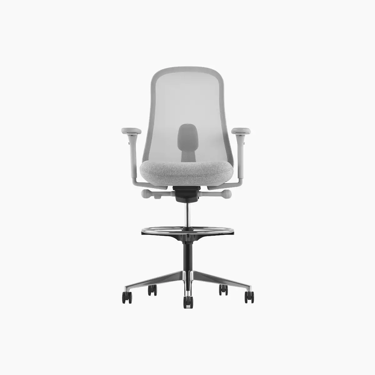 The Lino Stool from Herman Miller offers science-based ergonomic benefits at a great value. This comfortable office stool features Duo Suspension—a woven breathable seat back with integrated lumbar support that works with the contoured seat pad to support your spine from top to bottom. It also features an adjustable tilt that allows you to adapt this ergonomic office stool to your optimal comfort and center of balance. Additionally, it has a 360-degree footrest for added support and casters for easy movement.