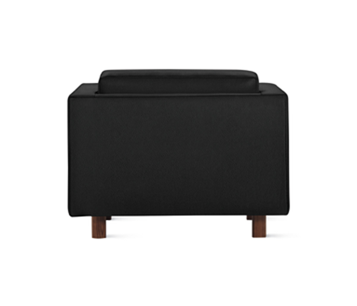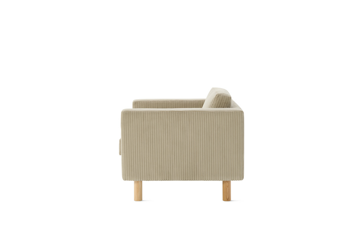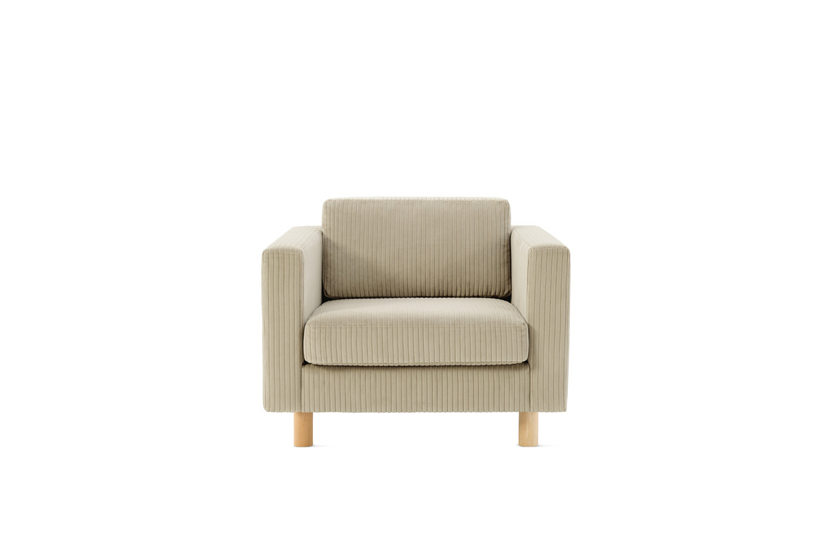 The Lispenard Armchair from Herman Miller boasts a low profile and an angled back for comfort. Made with tailored upholstery, it’s topped with feather-blend cushions supported by round hardwood legs. It’s a comfortable spot for casual meetings or in waiting rooms and hospitality settings.