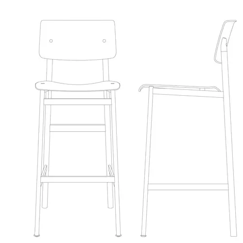 Loft Bar Stool combines Scandinavian design traditions with industrial references for a bar stool with full seat and back along with a small footprint. As with its chair counterpart, the Loft Bar Stool exemplifies simple, honest design through its clean lines and maximum comfort.
