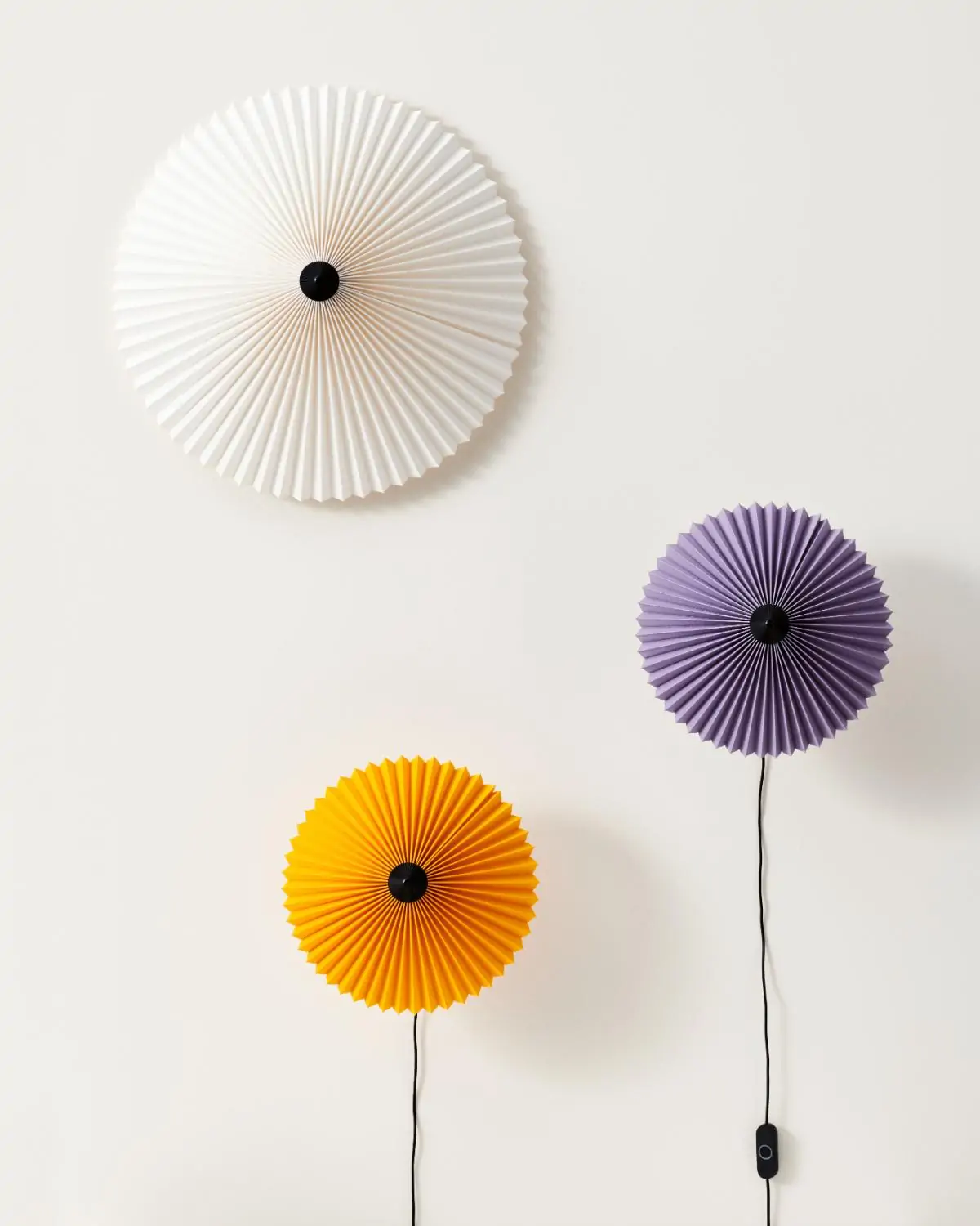 Designed by Inga Sempé, the Matin Flush Mount offers a contemporary yet poetic design, with a construction that combines visual delicacy with physical robustness. The lamp comprises a painted steel bracket for mounting onto the wall or ceiling, and is covered by a pleated cotton shade in two sizes with different colour options. The light source is two retrofit E14 bulbs that create a soft and ambient light.