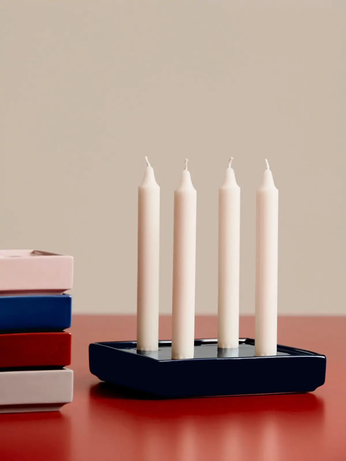 Meaning ‘brick’ in Italian, Mattone is a range of square candleholders crafted in solid stoneware. The collection offers both single candleholders with one central candle as well as a variant for multiple candles with four symmetrically placed holes. Featuring a semi-transparent glaze in different colour options, the candleholders are designed to be used both alone and together in groups.