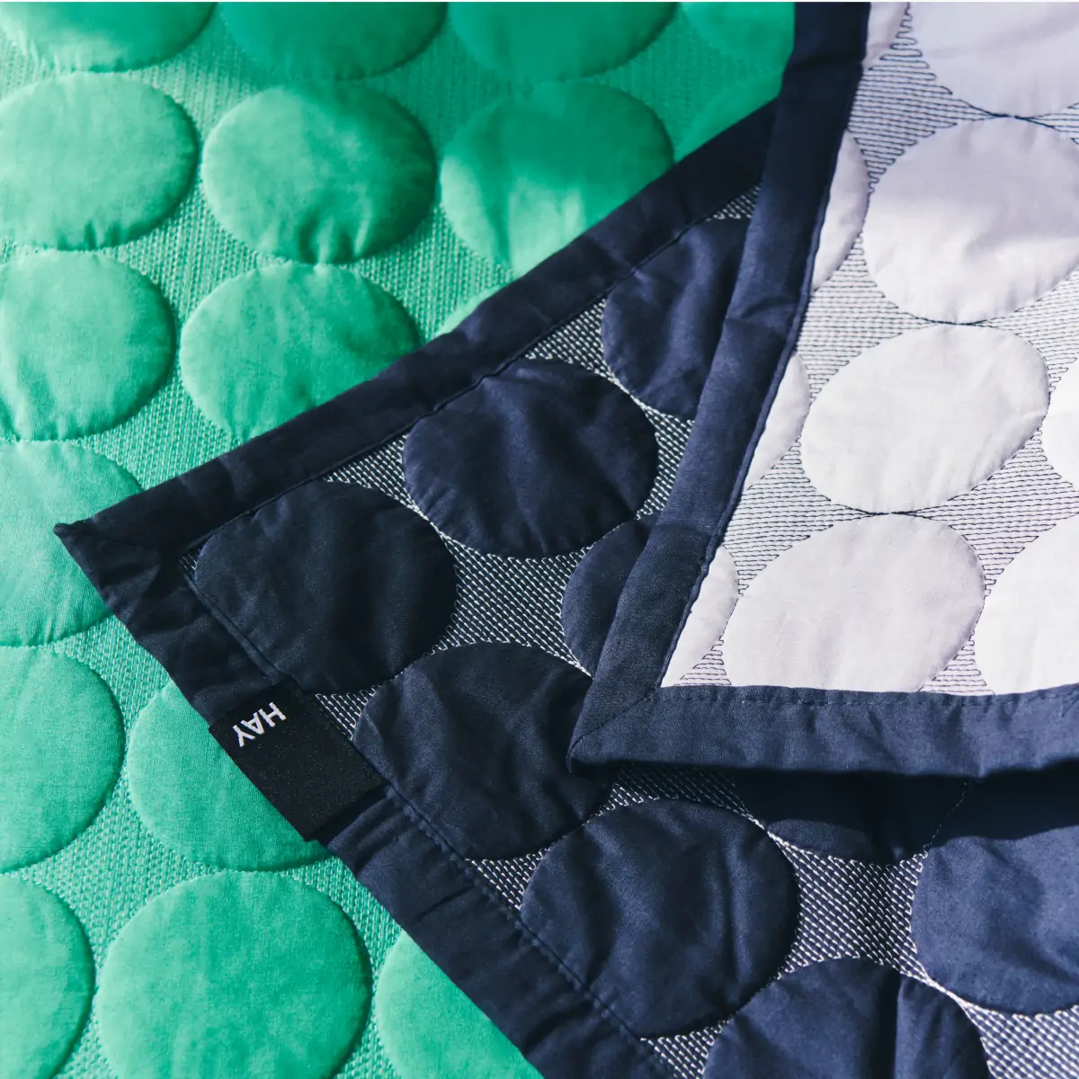 Mega Dot is a quilted bed cover featuring a three-dimensional circular pattern that combines modern design ideals with sensuous graphic expression. Made from soft and durable organic cotton, it features a two-tone design with a contrasting colour on the reverse side. Available in several different colours.