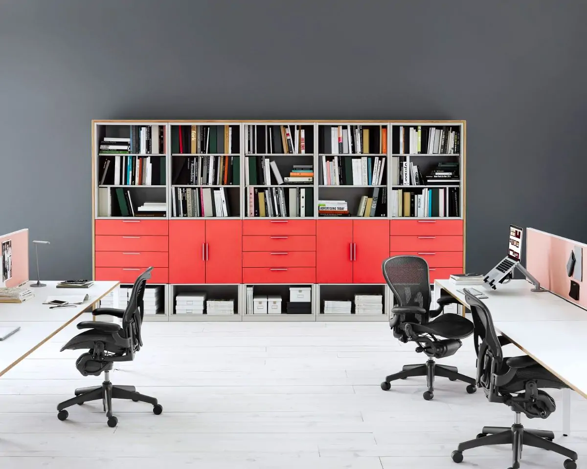 Creatively combine Meridian Storage elements to shape defined spaces and pathways that allow people to focus and collaborate—all without having to make permanent changes in open offices. Options for wardrobes, lockers, storage units, and drawers—as well as mobility and power—add to Meridian’s utility. The hardworking design means that it can even double as a seat, with cushion-topped options.