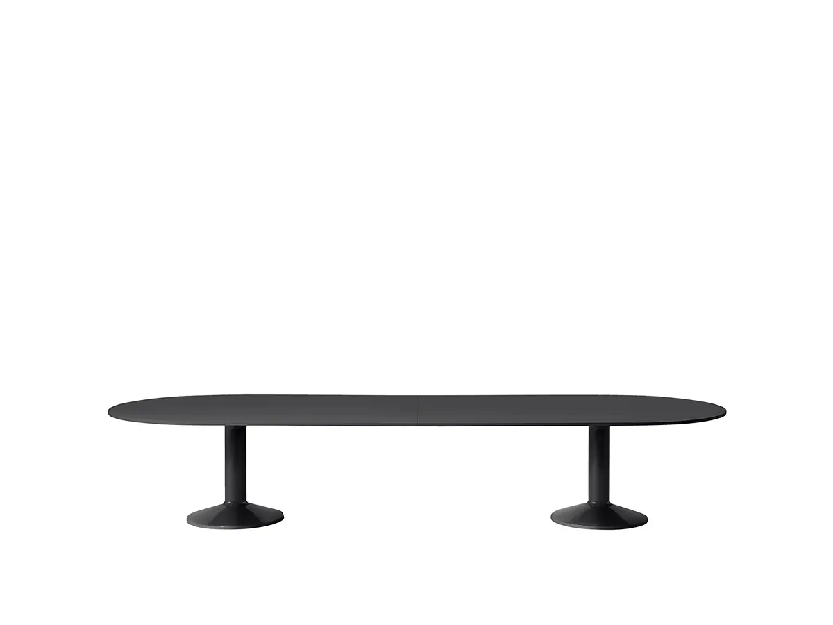 Blending elegance and functionality, The Midst Conference Table is a spacious focal point in any professional setting. Its generous surface, available in matte linoleum with anti-fingerprint properties or nanolaminate, provides ample room for meetings. The inviting design rests on a distinctive two-column base made of spun steel with a durable high gloss finish, creating stability without a feel of heaviness. The three size options offer flexibility for different office layouts, while its clean lines and monochrome options—Black, Dark Red, and Grey—create a focused atmosphere.