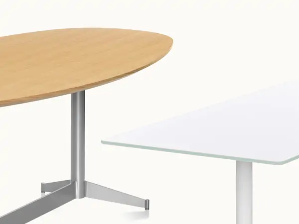 Available in a range of shapes, sizes, and materials, MP Tables transition from personal desk to meeting table.