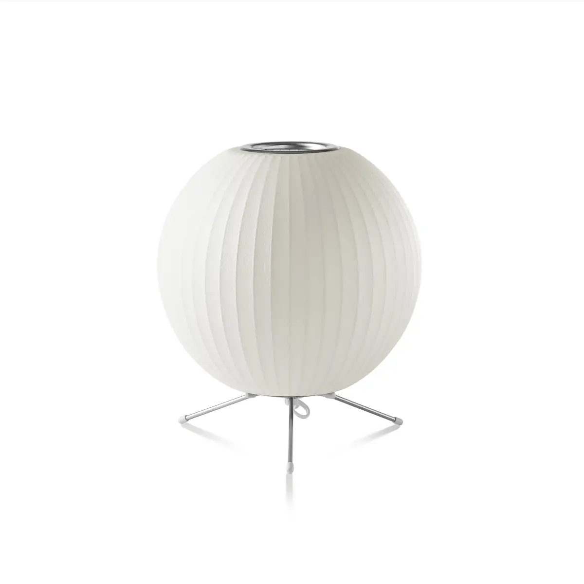 The Nelson Ball Tripod Lamp is an iconic piece of mid-century modern design originally created by George Nelson for Herman Miller in 1952. Its design features a spherical, translucent polymer shade that emits a soft, diffused light, mounted on a sleek steel tripod base. These lamps are celebrated for their elegant simplicity and functionality, and are part of the permanent collection at the Museum of Modern Art in New York