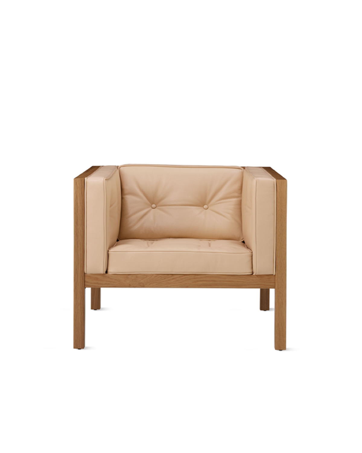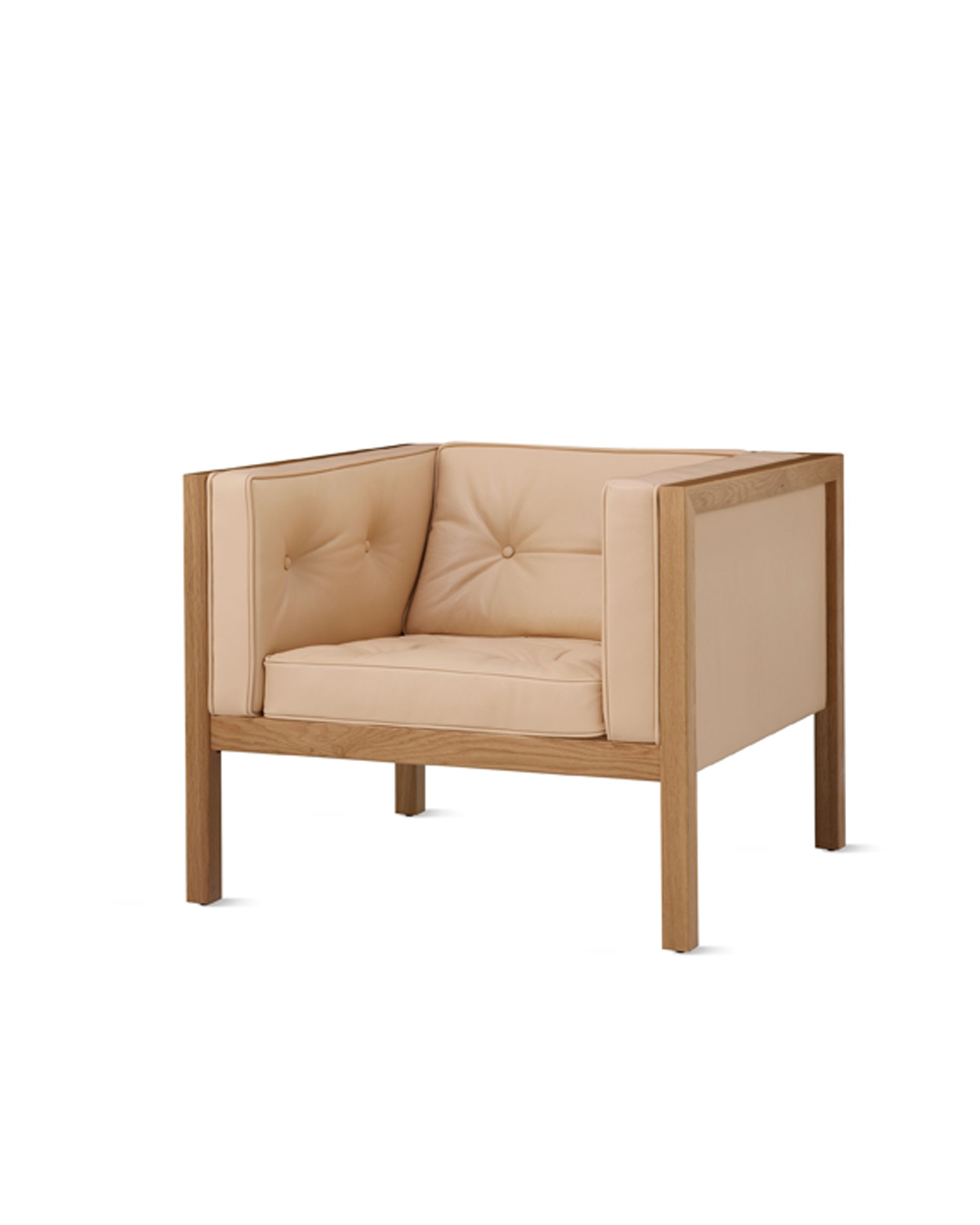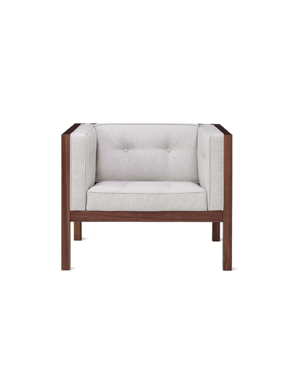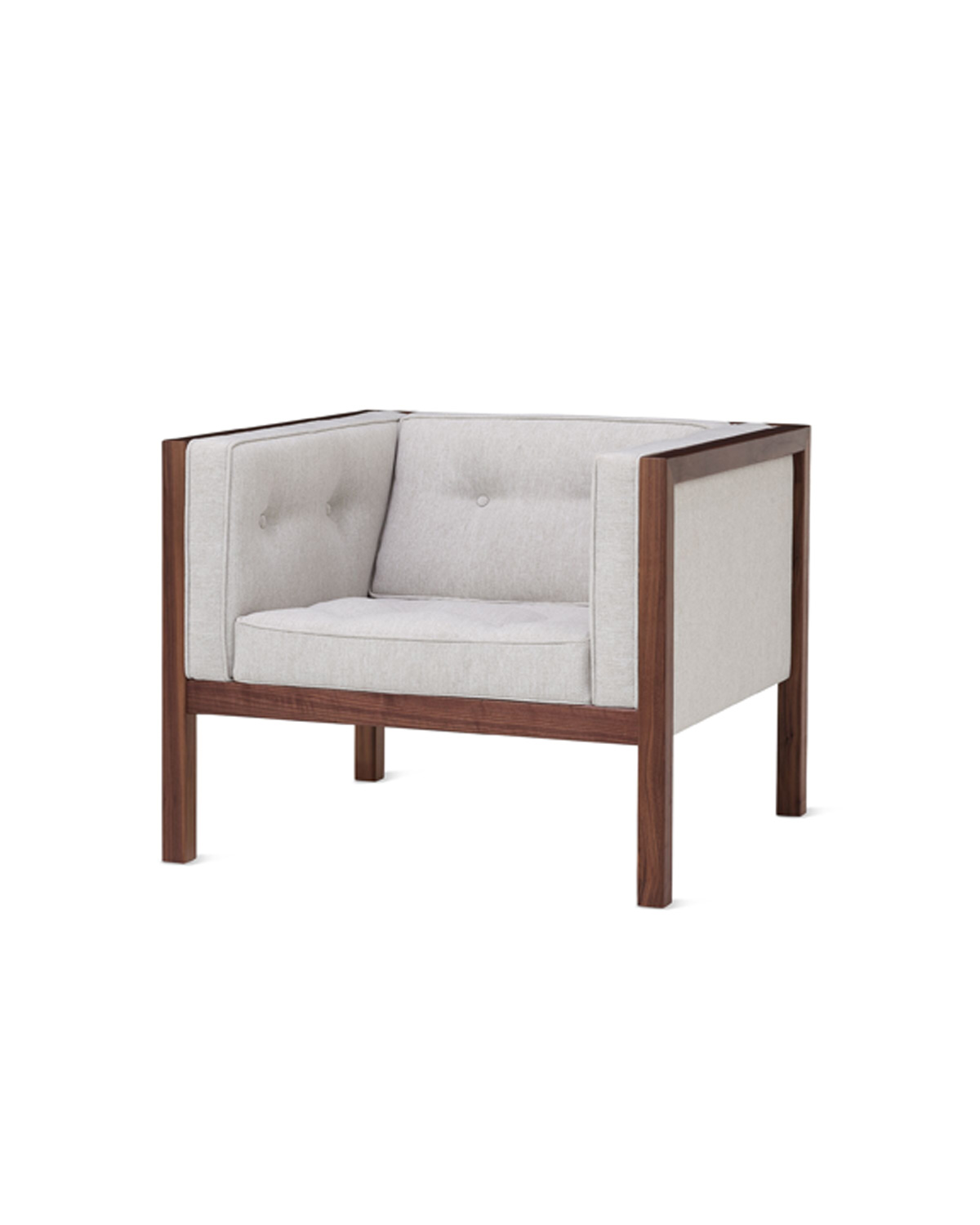 The striking Nelson Cube Armchair is a study in the dichotomy of hard and soft. For his 1968 design, George Nelson paired an architecturally rigorous wood frame with soft, tufted cushions for low-key lounging. As relevant today as when it was first introduced, the Cube Armchair is a design that sits beautifully in the living room or the office.