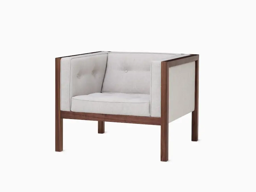 The striking Nelson Cube Armchair is a study in the dichotomy of hard and soft. For his 1968 design, George Nelson paired an architecturally rigorous wood frame with soft, tufted cushions for low-key lounging. As relevant today as when it was first introduced, the Cube Armchair is a design that sits beautifully in the living room or the office.