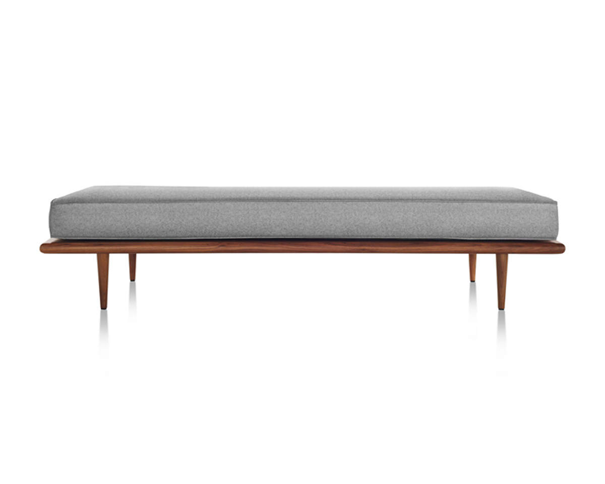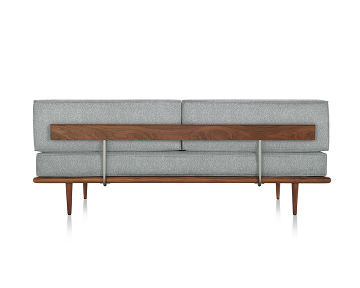 Nelson designed an early version of the Daybed for his own use in 1941, then refined the original design and launched it in 1949. Nelson advocated that design should evolve as human behavior changed. In his ideal interior space, furniture was designed to be in relation to the whole. With flexibility inherent in its form and use, the Nelson Daybed exemplifies this philosophy. As an archival advertisement points out, the Nelson Daybed is “ideal for the bedroom that has to double as a sitting room.”