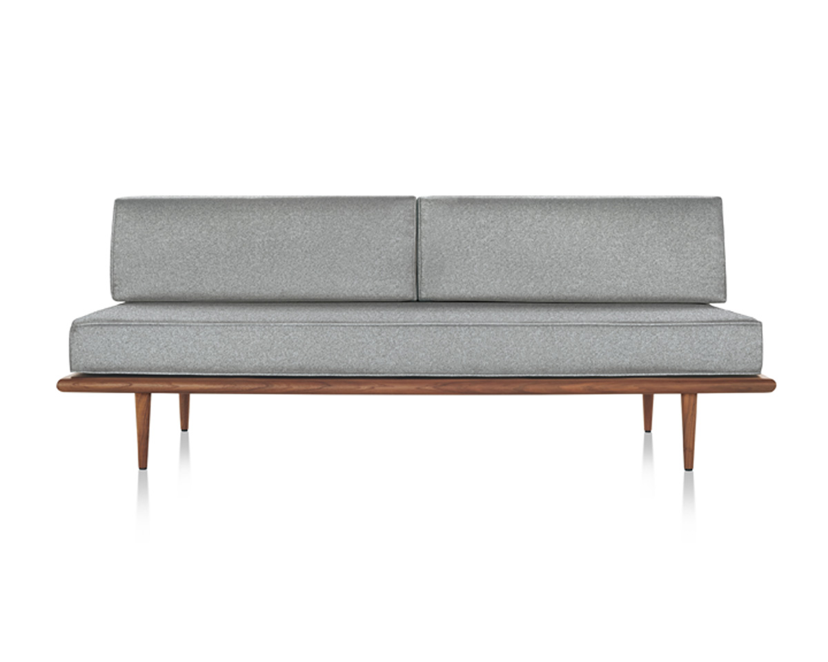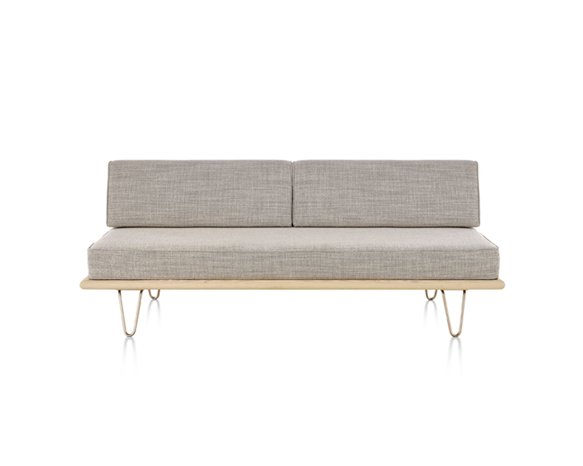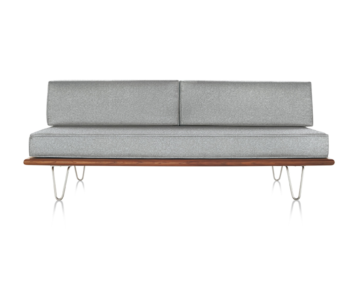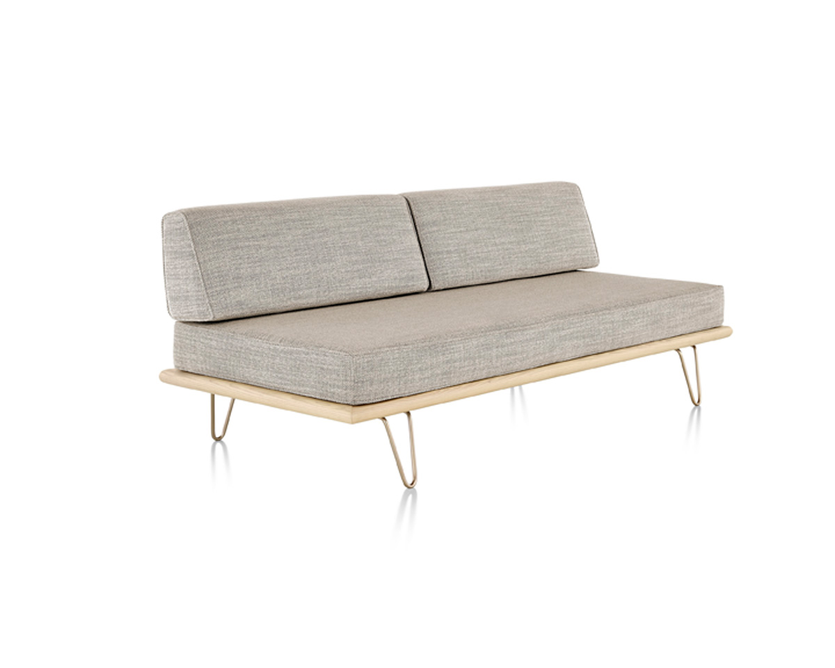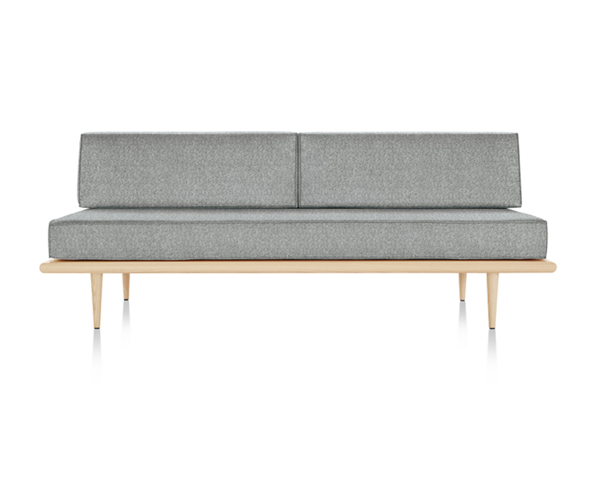 The Nelson Daybed from Herman Miller is an iconic mid-century modern daybed designed by George Nelson. Crafted from premium woods with tapered wood or stainless steel hairpin legs, it integrates anywhere from lobbies to offices. It features removable back or side bolsters, beveled edges, and dual-density foam cushions in a range of fabrics for flexible comfort.