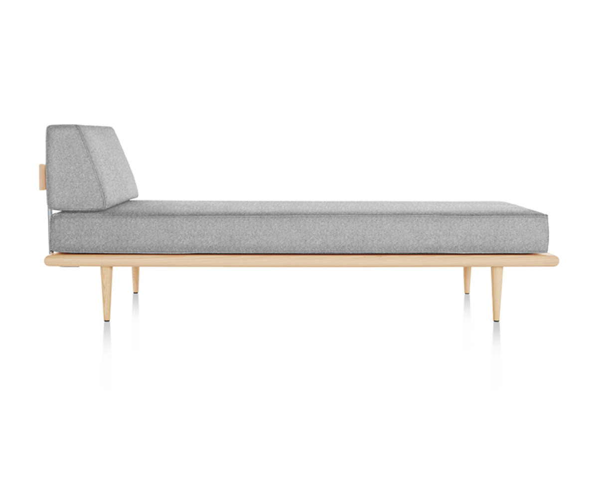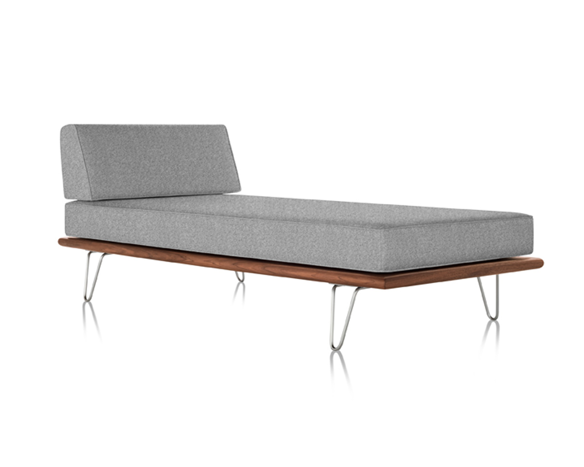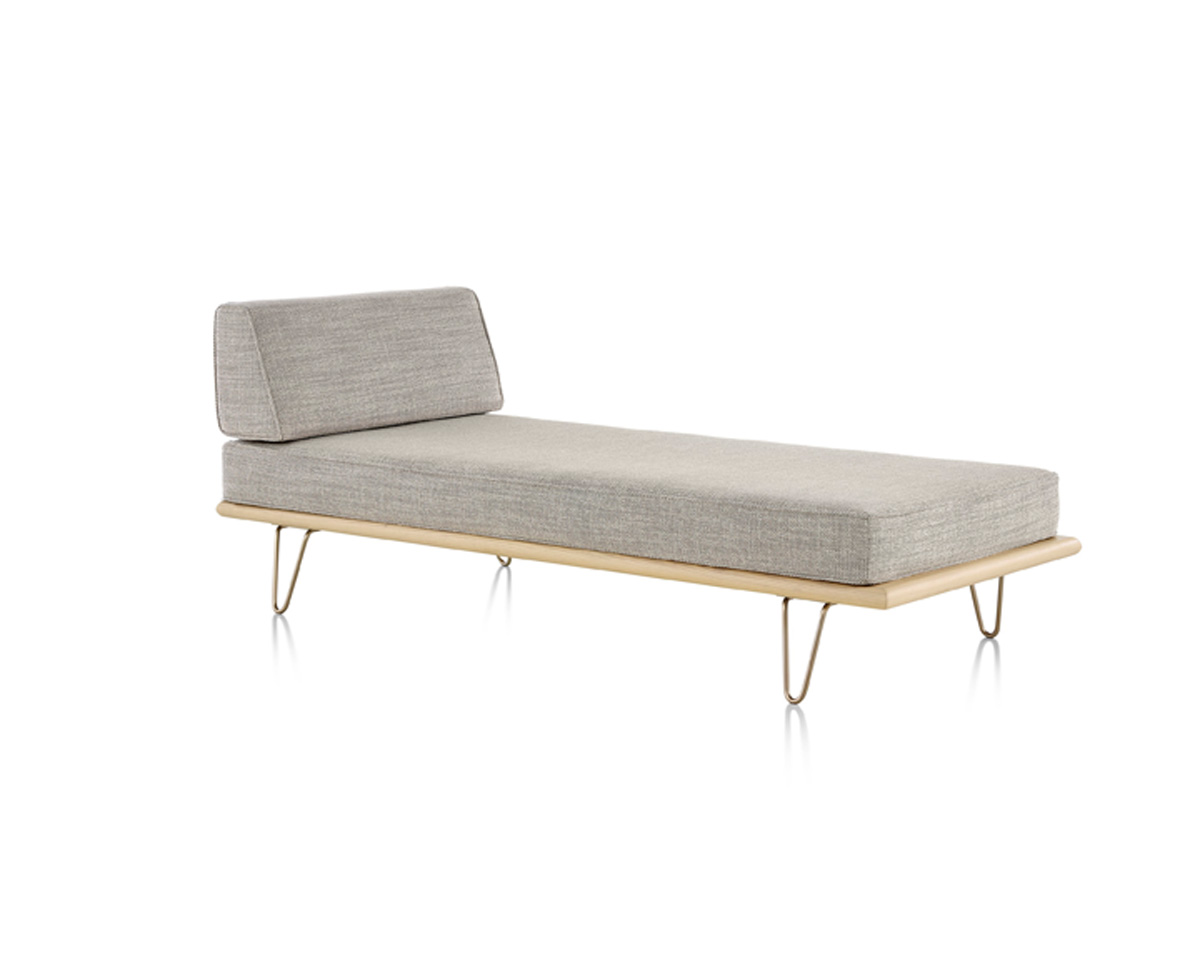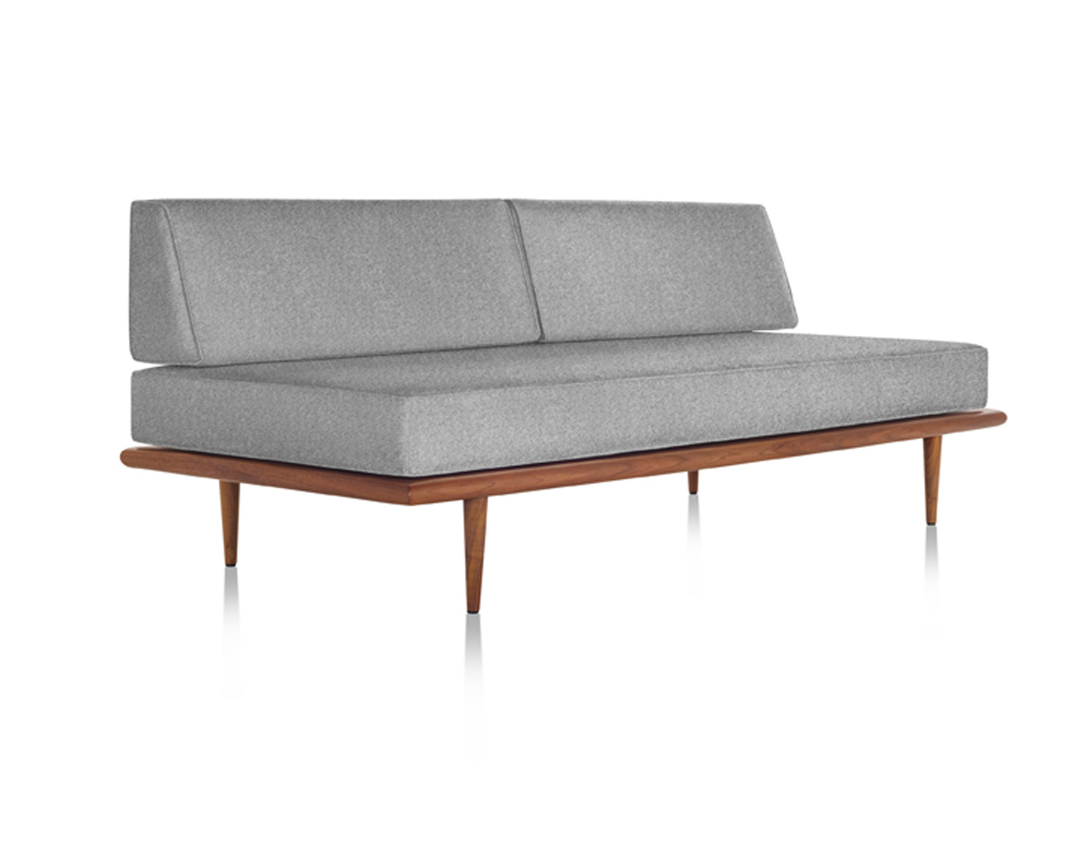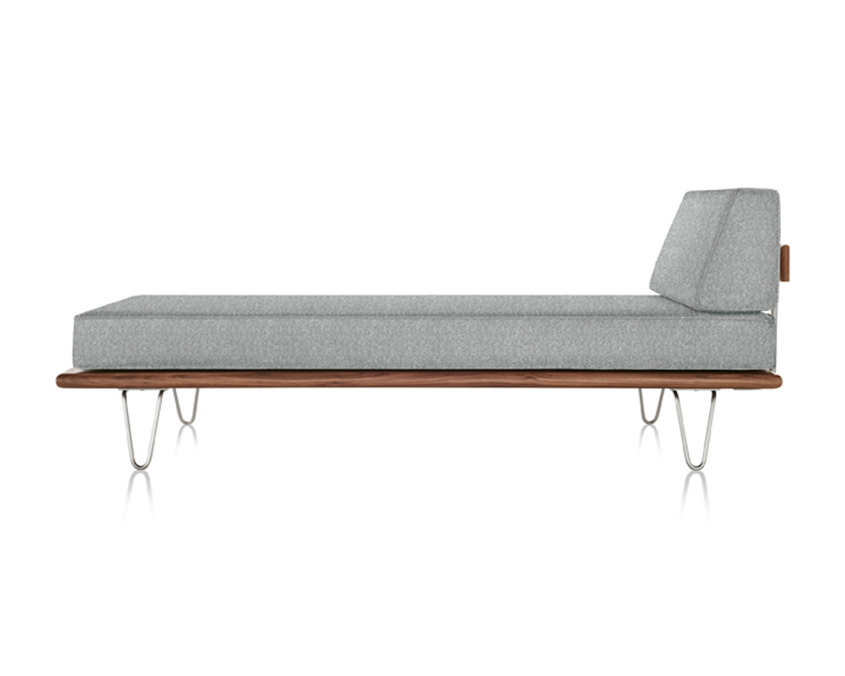 The Nelson Daybed from Herman Miller is an iconic mid-century modern daybed designed by George Nelson. Crafted from premium woods with tapered wood or stainless steel hairpin legs, it integrates anywhere from lobbies to offices. It features removable back or side bolsters, beveled edges, and dual-density foam cushions in a range of fabrics for flexible comfort.