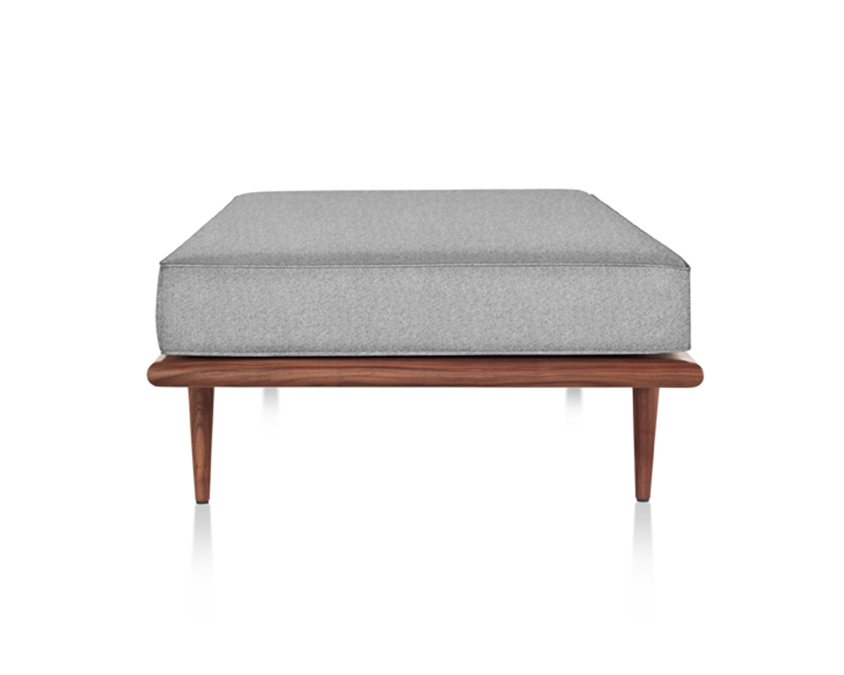 Originally designed in 1949 by George Nelson, its reissue retains original specifications and crafted details like the beveled edges of the wood platform and rounded welt-cord piping of the cushions, a feature that distinguishes the original from imitations. Stainless steel hairpin legs or the tapered wood legs give it the classic Nelson touch. The cushioning is enhanced with dual-density foam for more support and durability while maintaining its lightweight aesthetic. As homes and apartments shrink in size, multipurpose furniture like the Nelson Daybed add a practical and sophisticated presence to any room.