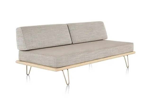 The Nelson Daybed from Herman Miller is an iconic mid-century modern daybed designed by George Nelson. Crafted from premium woods with tapered wood or stainless steel hairpin legs, it integrates anywhere from lobbies to offices. It features removable back or side bolsters, beveled edges, and dual-density foam cushions in a range of fabrics for flexible comfort.