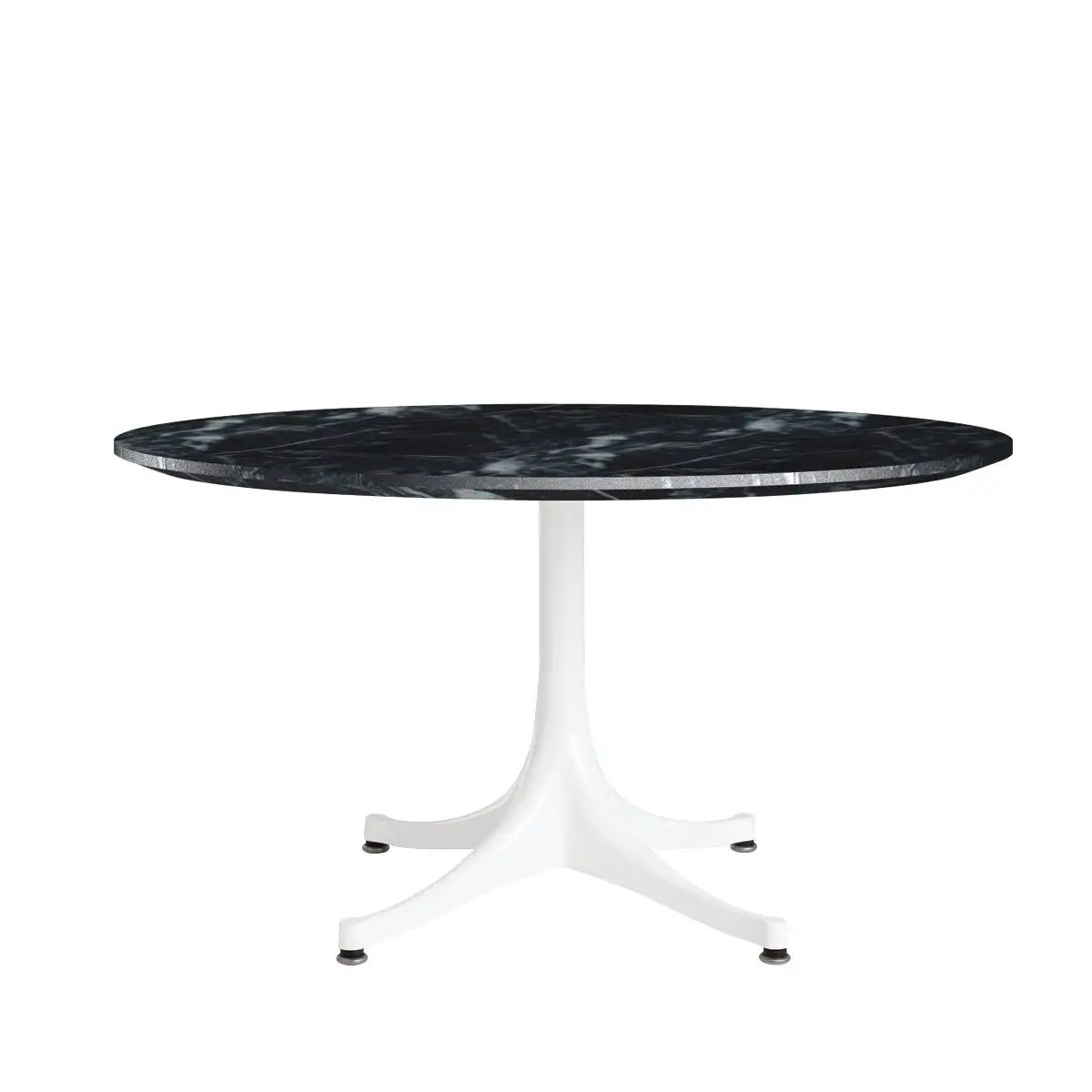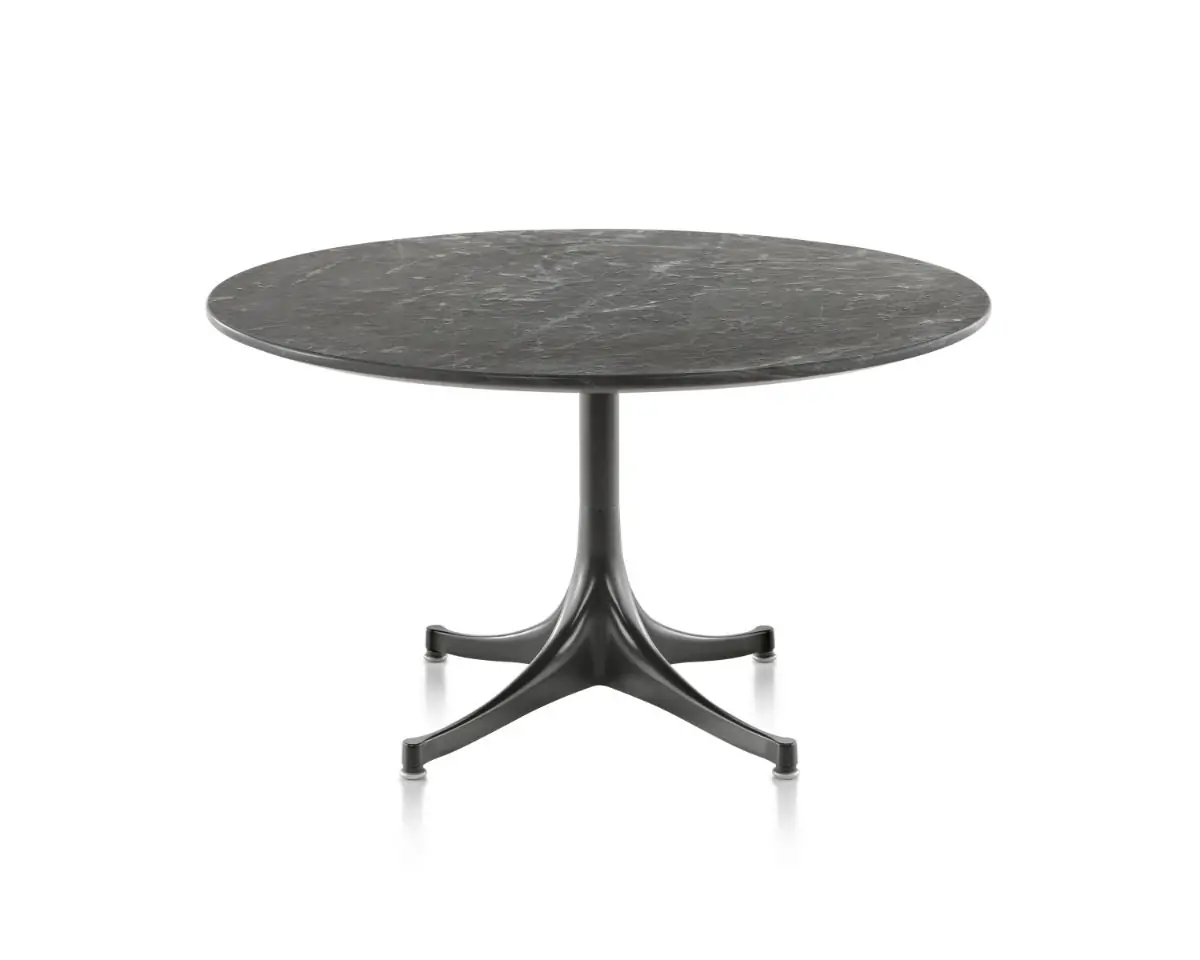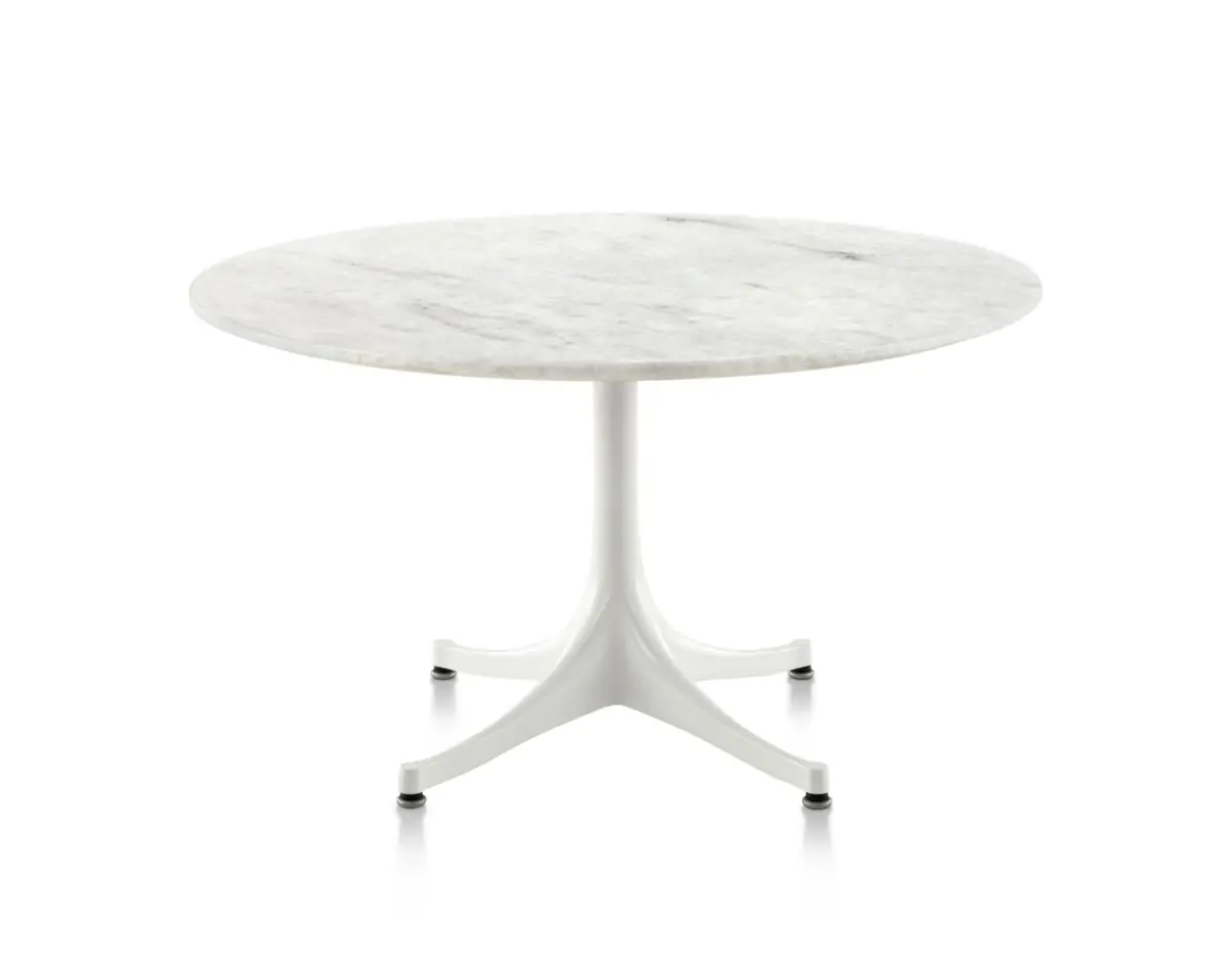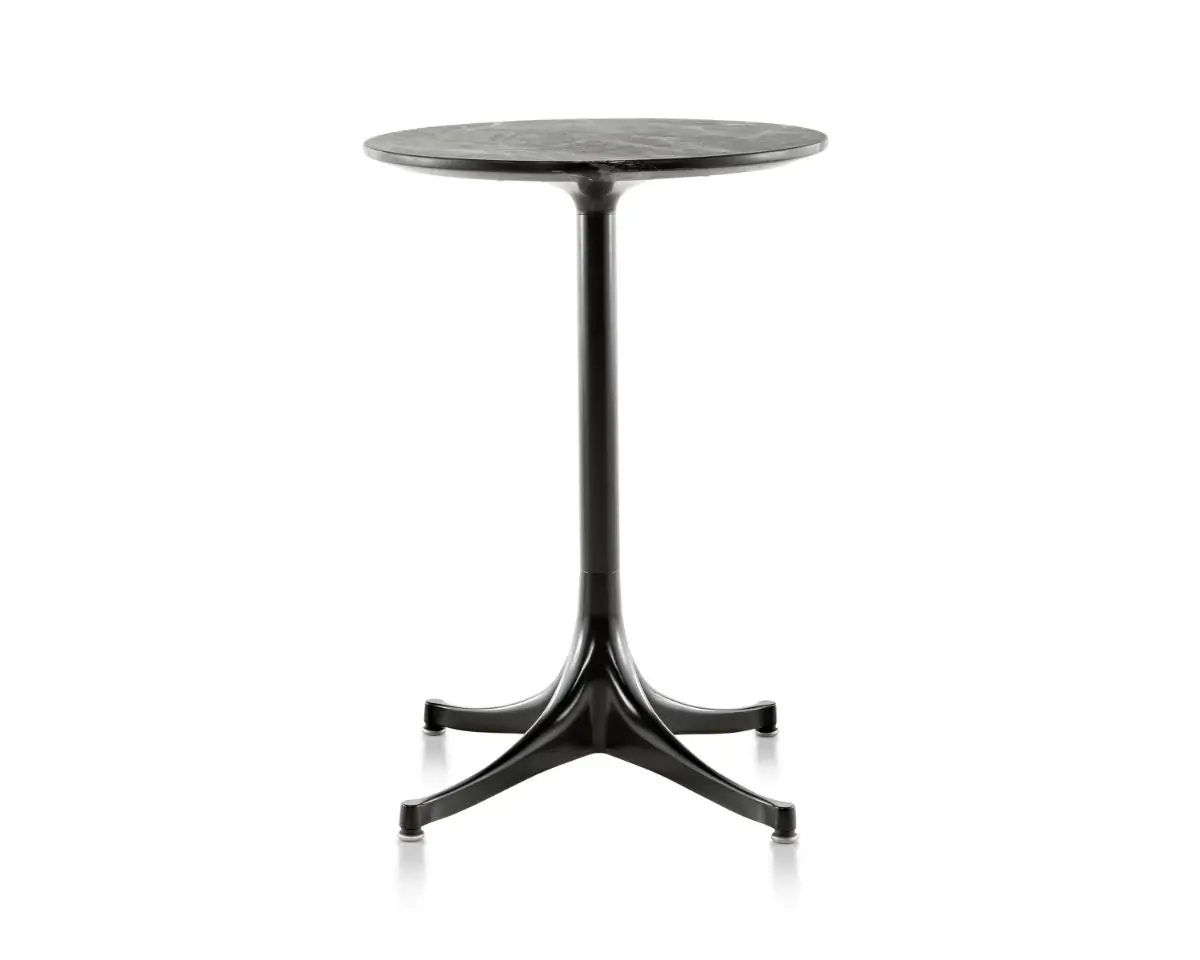 This versatile classic, designed by George Nelson in 1954, is available in three sizes and with laminate or natural stone tops, which means they can be used in a variety of ways. The tables will hold a lamp, a laptop or tablet, a book and a cup of coffee, or a vase of flowers in style. The clean, graceful lines of the pedestal and legs are typical of a Nelson design.