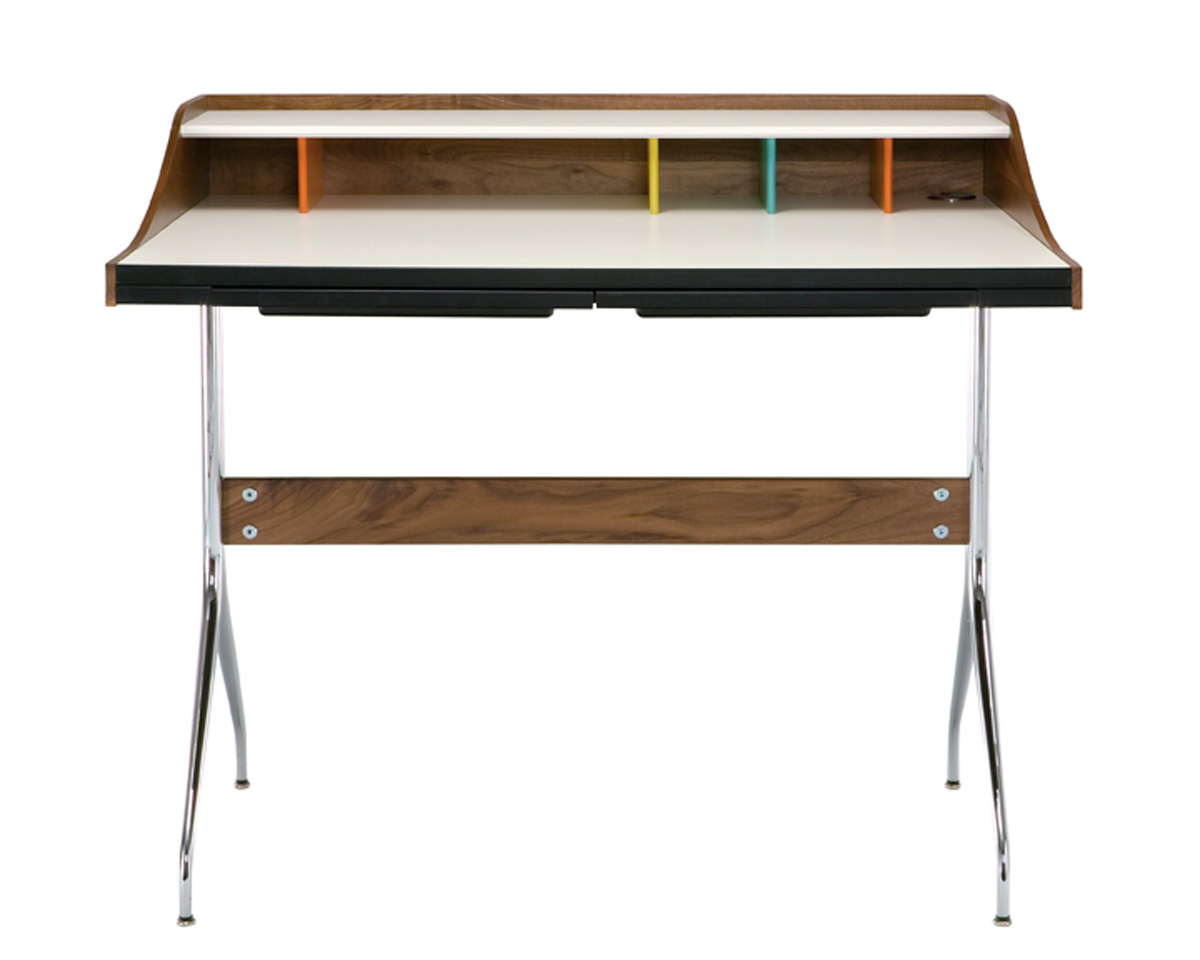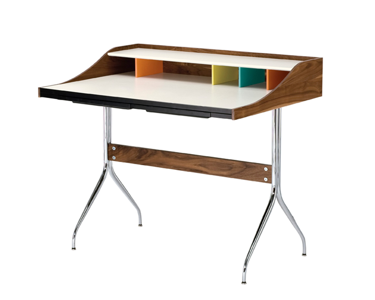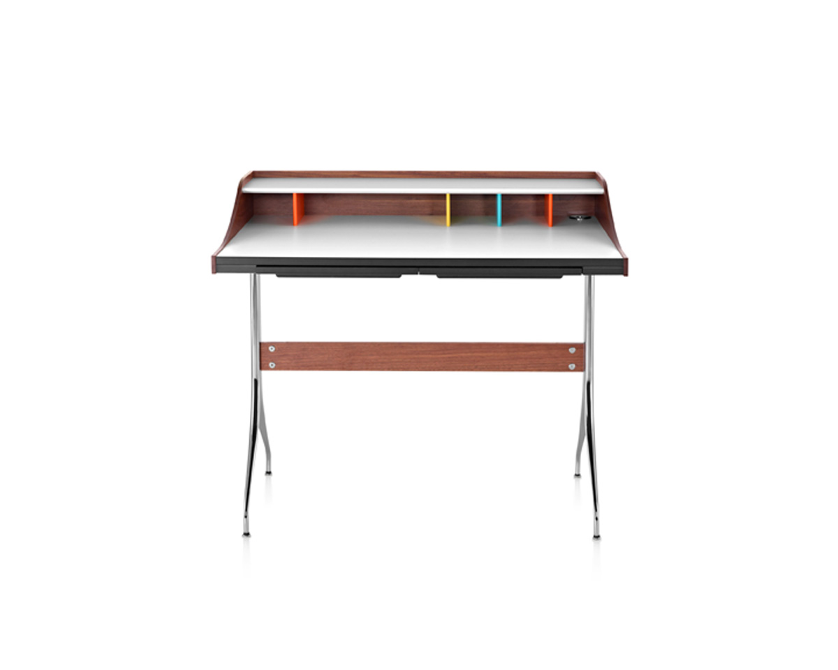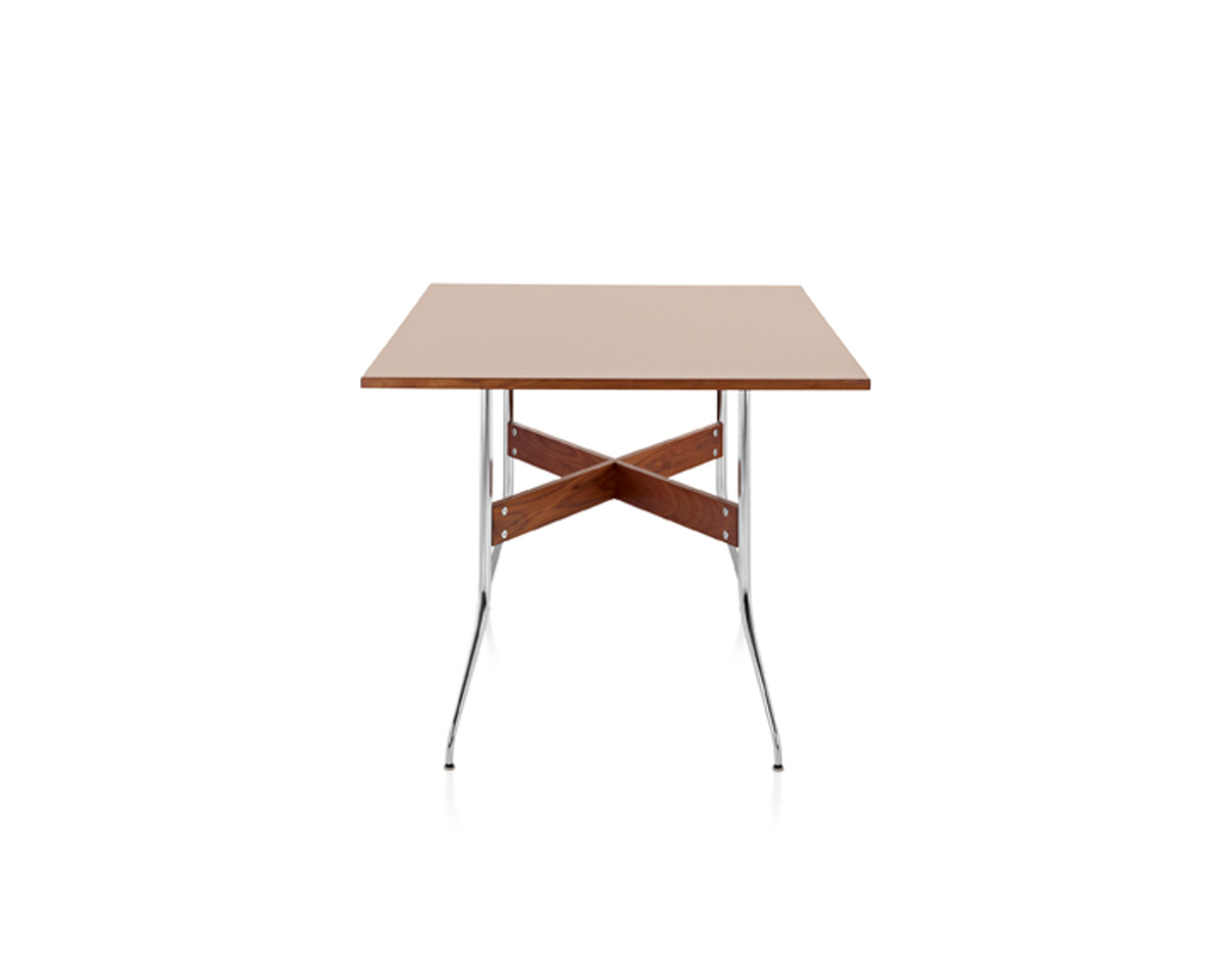 The Nelson Swag Leg Table from Herman Miller uses a process called “swagging” to produce tapered and curved metal legs, creating a sturdy base. The Swag Leg Table comes with the option of a round or rectangular tabletop that can be used in office or hospitality settings. All Nelson Swag Leg tables include chrome bases and adjustable glides to adapt to your space’s needs.