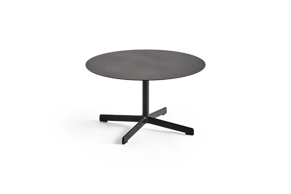 The Neu Low Table features a small round or squaretable top attached to a short central pole and angled 4-star pedestal base. Crafted in outdoor powder coated steel and cast aluminium to offer greater durability and resilience, it has a versatile quality that makes it well-suited to both indoor and outdoor use. Its uncluttered lines give it a sleek, understated expression, making it a popular choice for public spaces such as cafés and cultural institutions, as well as private areas such as gardens and balconies.