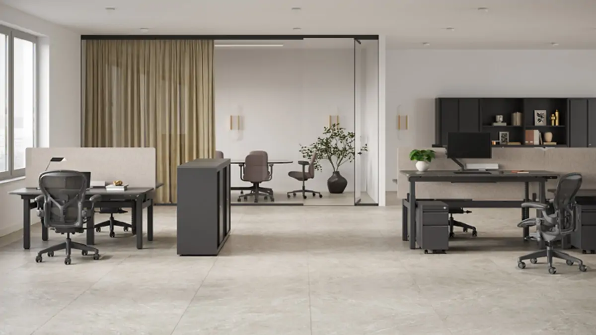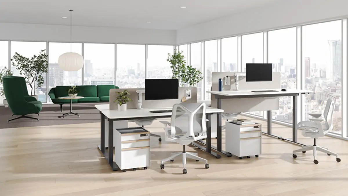 The desks are available in the refined, timeless finishes that harmonize with the entire Herman Miller portfolio. Choose from customizable materials across the surface and base to design a more neutral space or add in splashes of color.