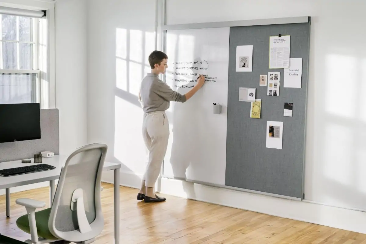 The OE1 Wall Rail and Board enables teams to collaborate quickly, then take their ideas with them. Part of the OE1 Workspace Collection.