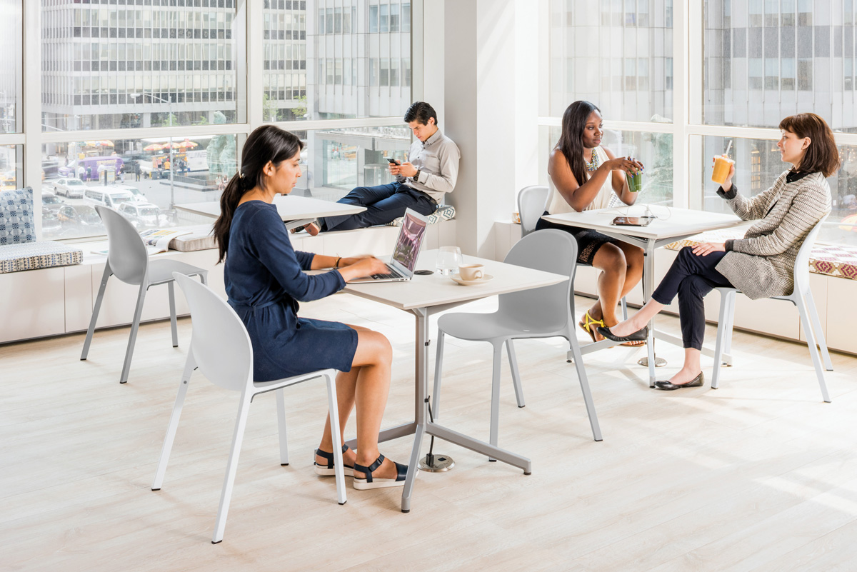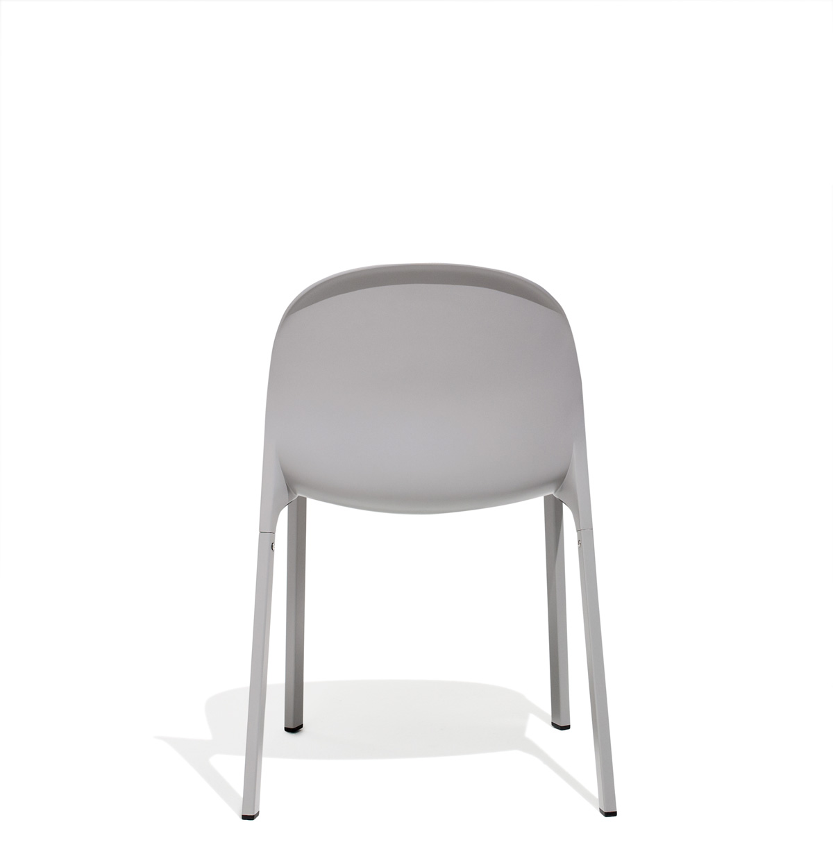 The chair’s shape evolved in order to maximize structure and hit the sweet spot in terms of weight. Olivares’s team continuously measured against the Bertoia side chair (15 lbs.) until shavings here, adjustments there yielded the perfect weight: the final product is just under 15 lbs.